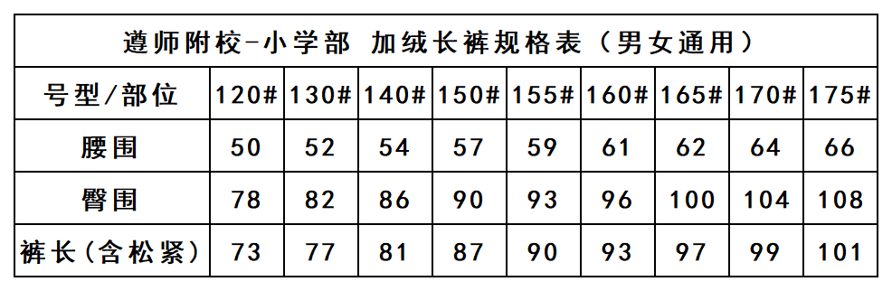 遵师附校-加绒长裤(小学)
