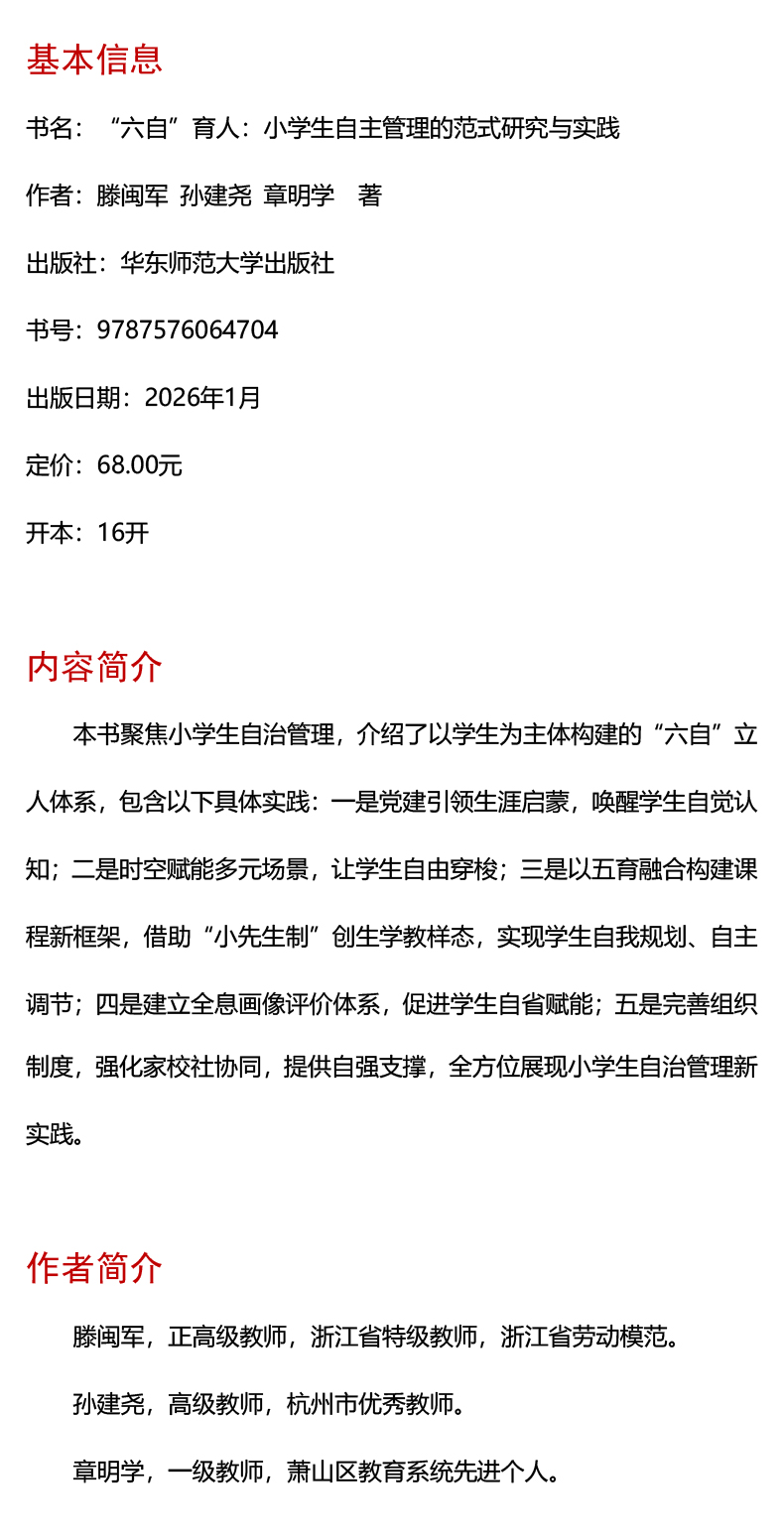 “六自”育人 小学生自主管理的范式研究与实践 学生自主管理 培育核心素养