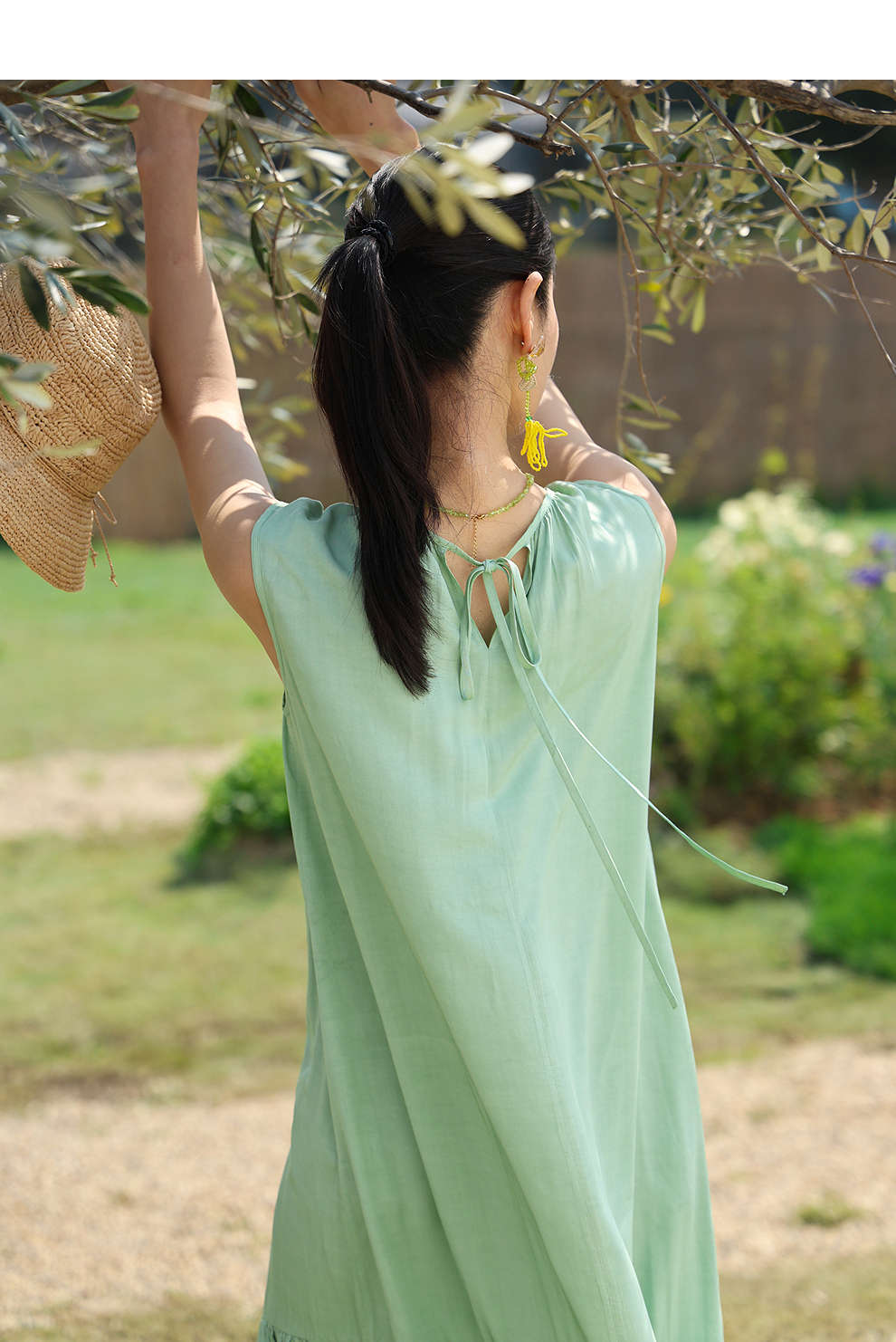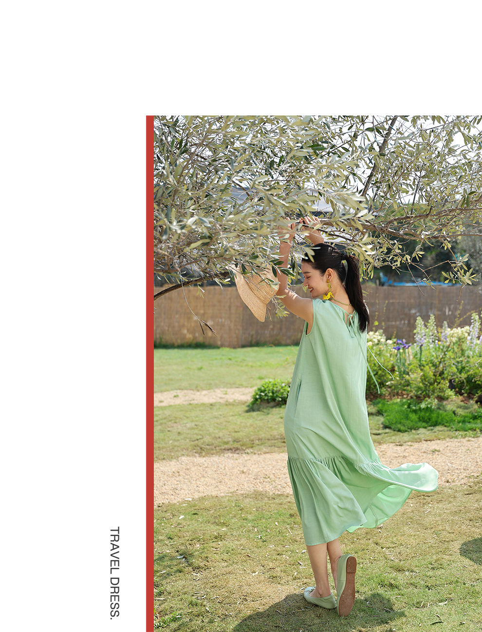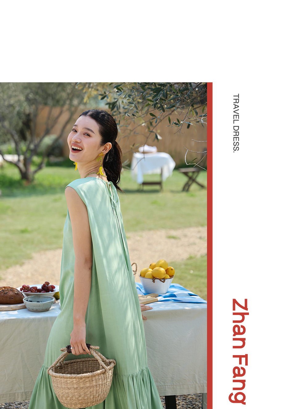 绽放旅行女装262朵/嫩芽绿玫瑰纤维背心鱼尾裙无袖背心裙连衣裙女