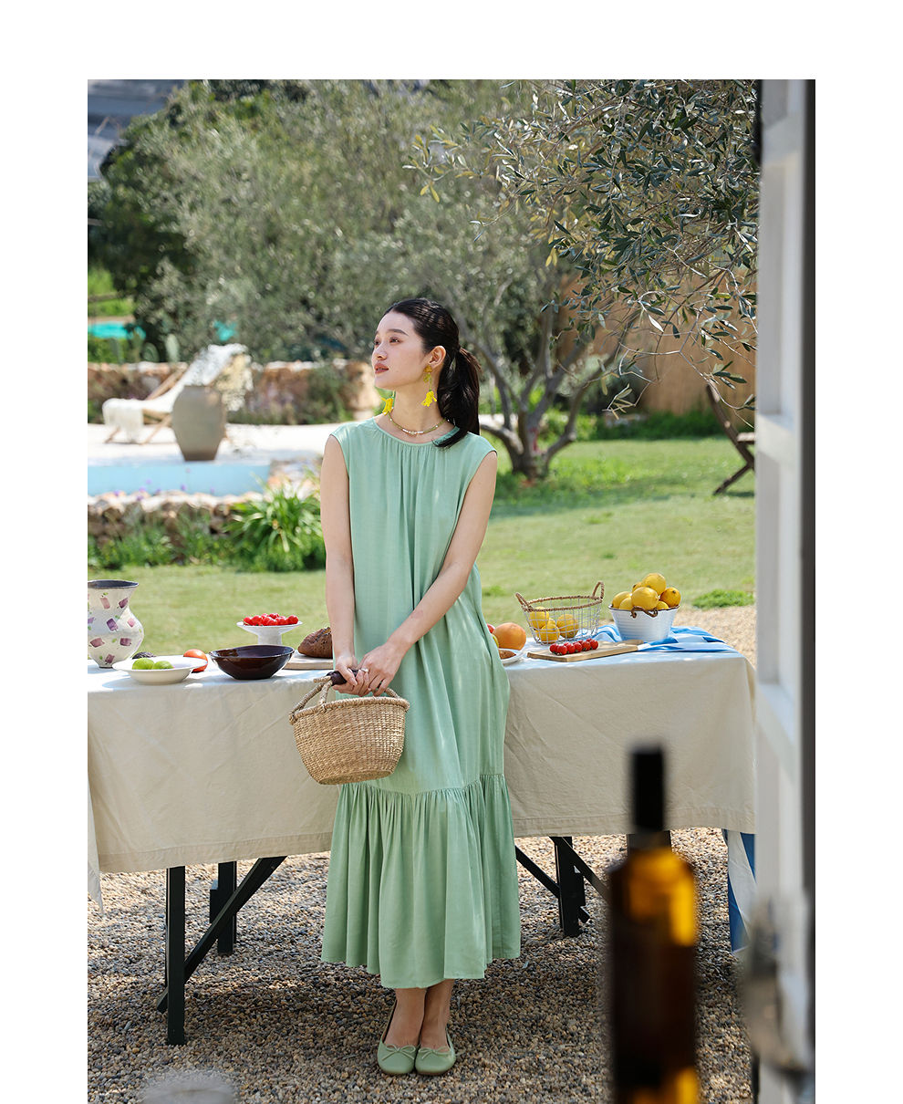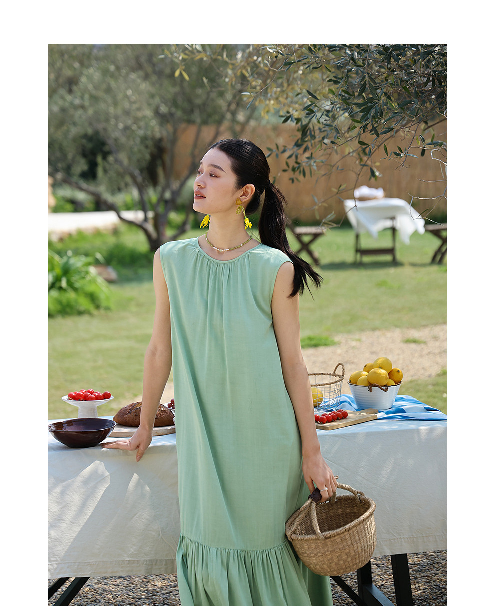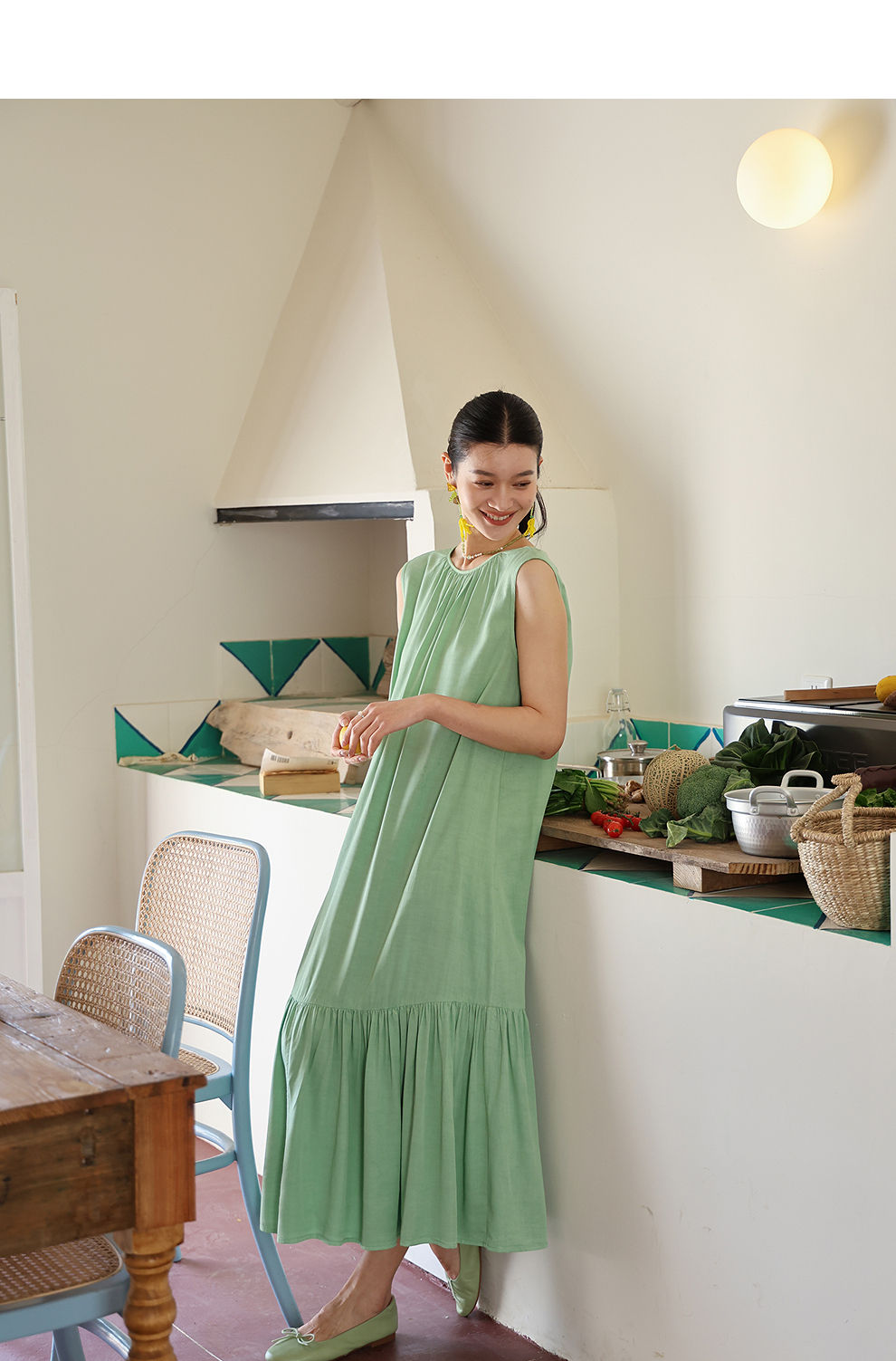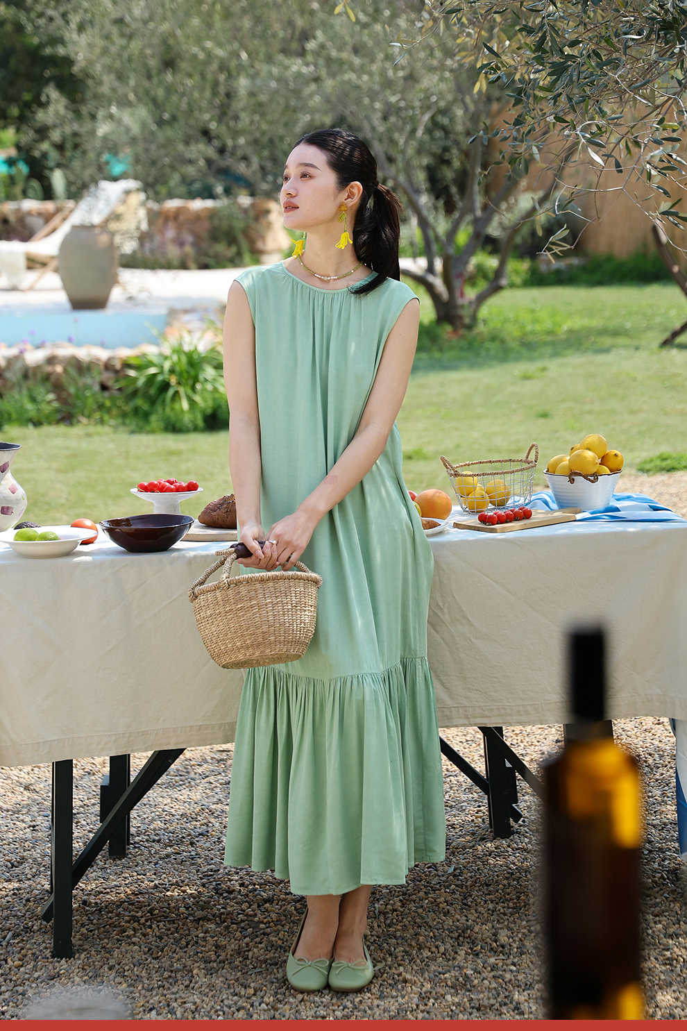 绽放旅行女装262朵/嫩芽绿玫瑰纤维背心鱼尾裙无袖背心裙连衣裙女