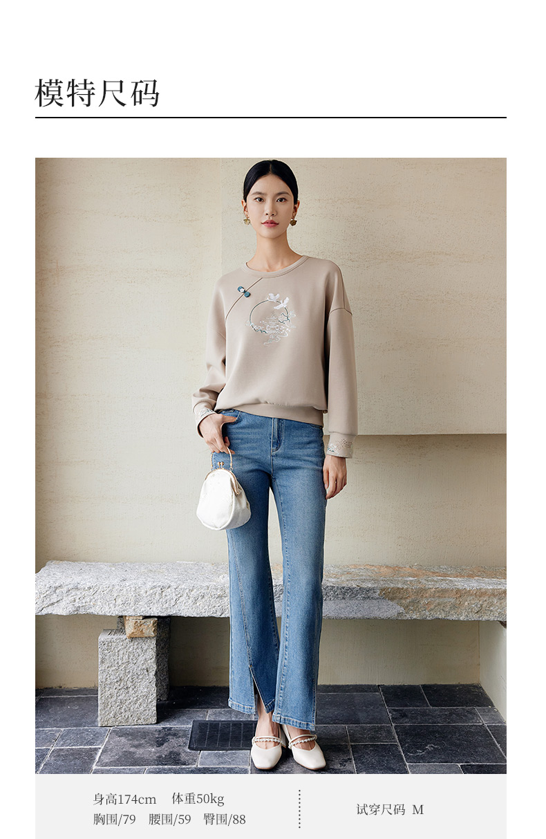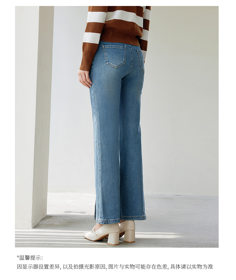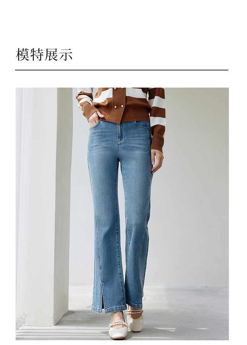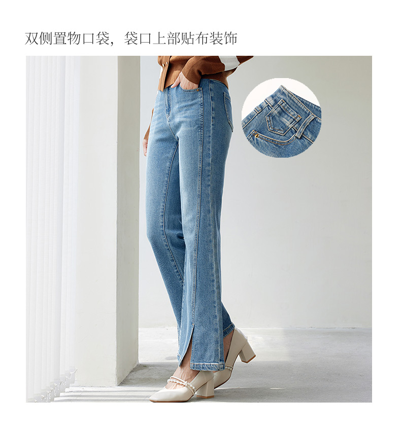 玳莎天丝微喇牛仔裤女2024年秋季新款开衩脚口时尚修身显瘦喇叭裤 EC36304