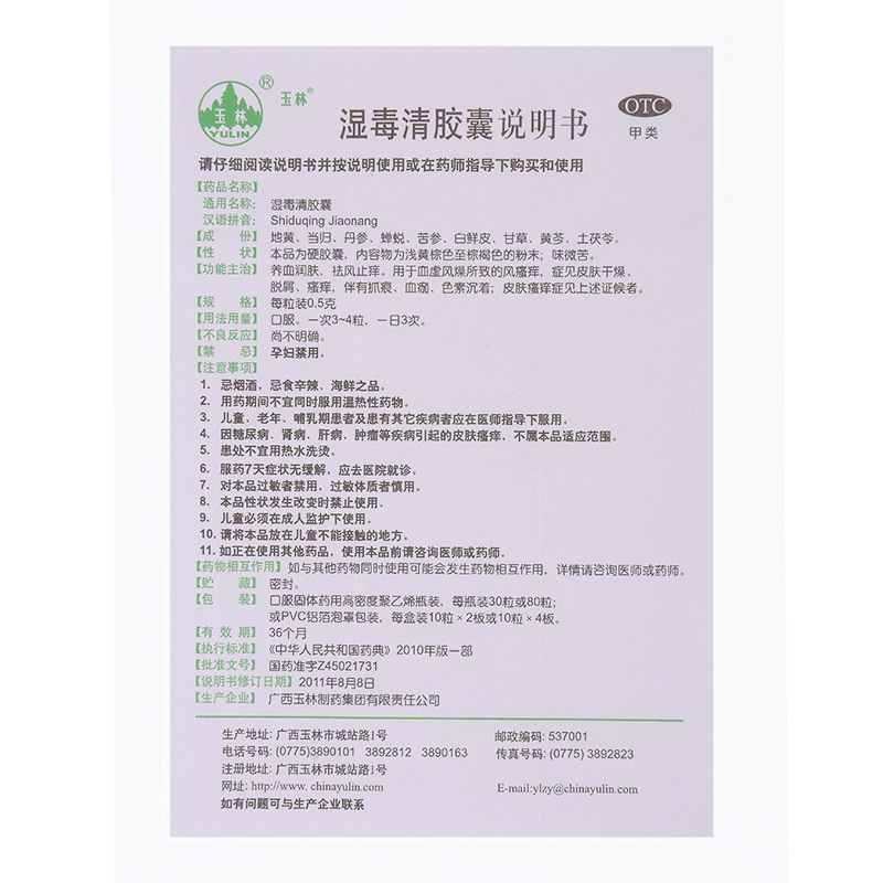 玉林湿毒清胶囊30粒片祛风止痒干燥脱屑化湿皮肤瘙痒症血瘀