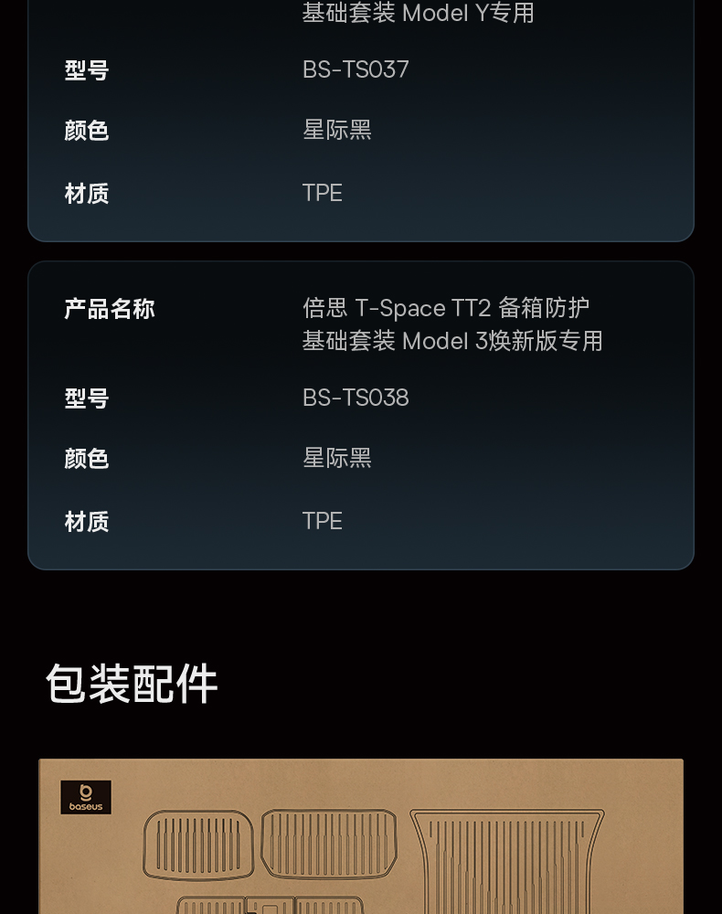 【十一专享】倍思 T-Space TT2 特斯拉备箱防护基础套装 Model Y/焕新3专用 1.0 4件套
