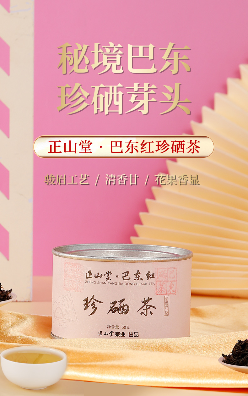 正山堂骏眉中国 巴东红珍硒茶 湖北特级红茶单芽茶叶花果香罐装50g/100g