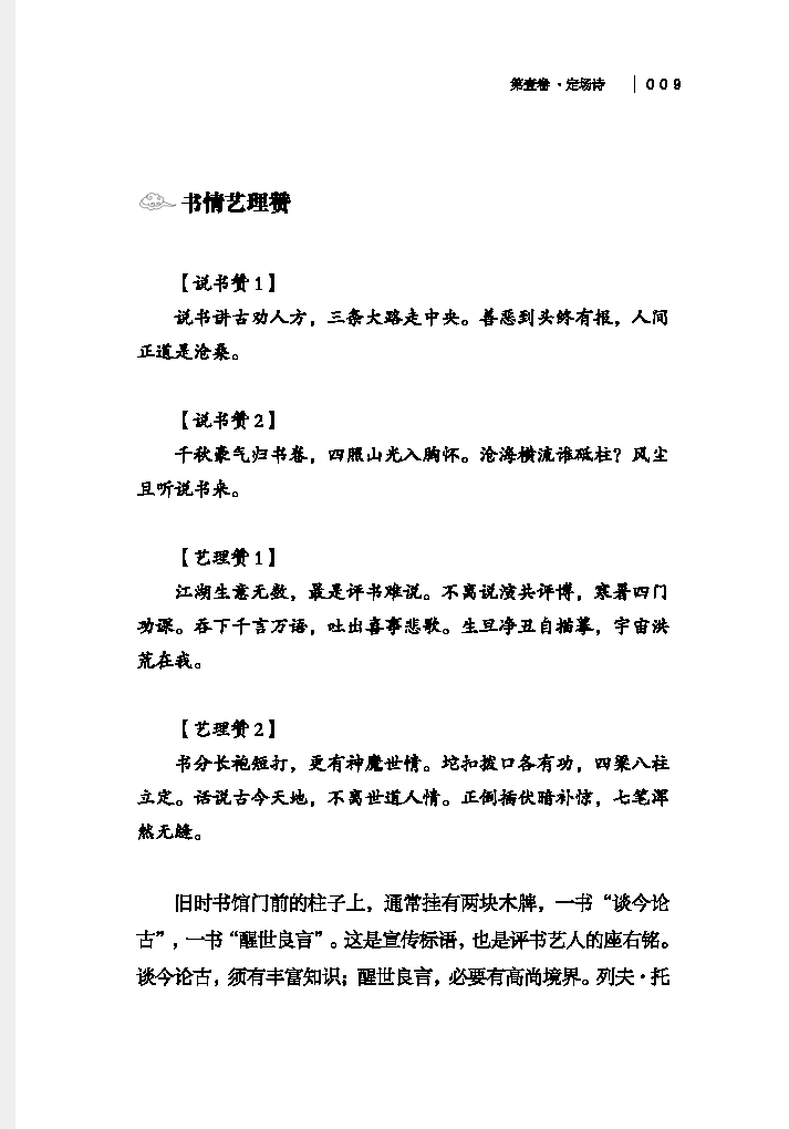 本书收录经典评书赋赞近七百篇,包含原创及搜集打磨传统作品,分门别类加以讲解,融汇大量曲艺知识及笔者多年说书实践感悟,特别是对“定场诗”“人物赞”“砌末”“战阵”等提出独到见解,堪称心血之作。集实用性、知识性、趣味性、可读性于一身,既是工具书级曲艺专业宝典,又是普通爱好者的自学资料、消遣佳本。