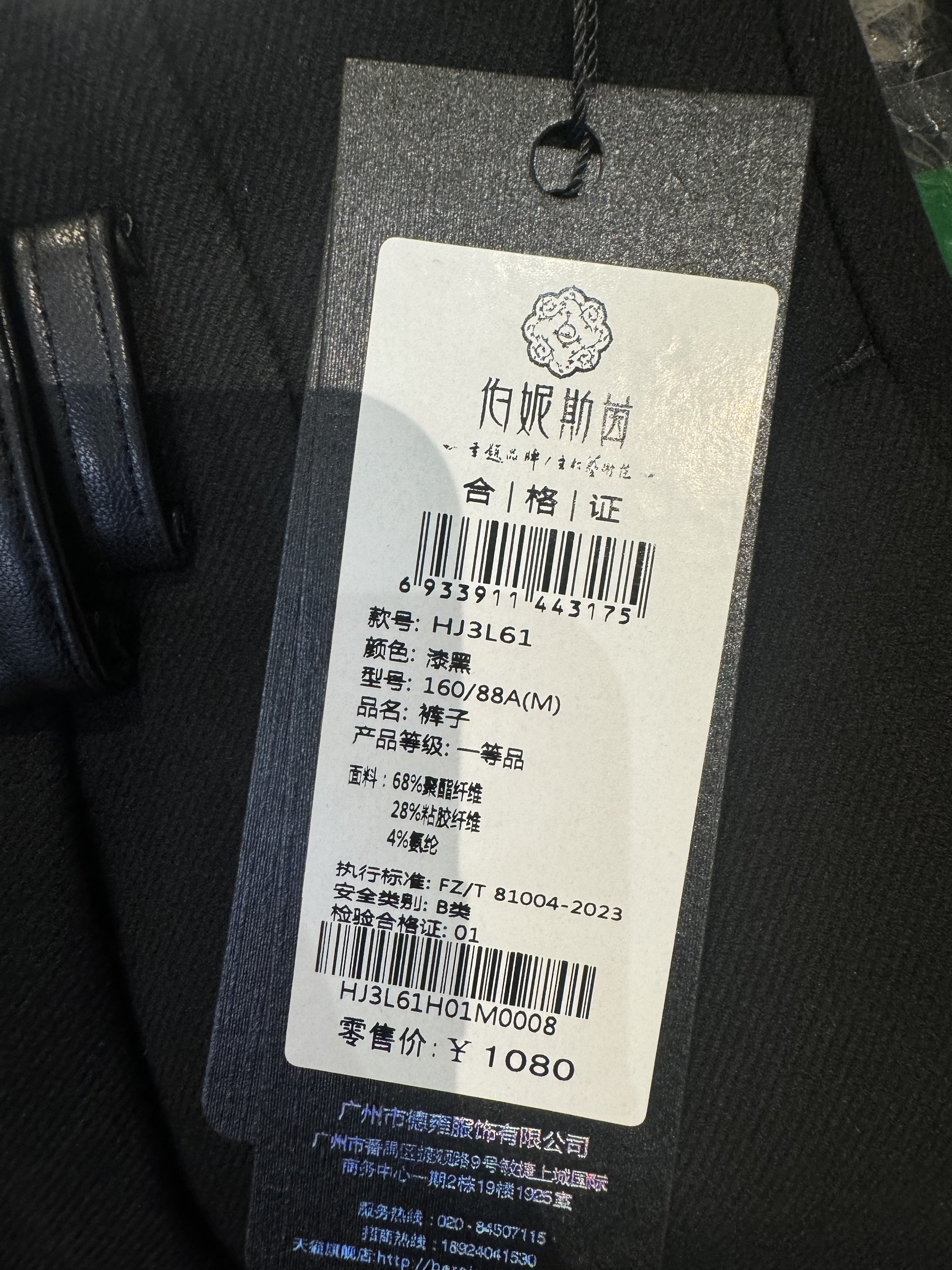 漆黑色~裤子HJ3L61