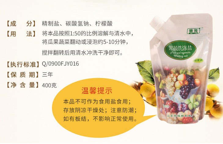 粮票|果蔬洗涤盐 地下千米矿盐 去污不刺激 不损伤食材 400g*3袋