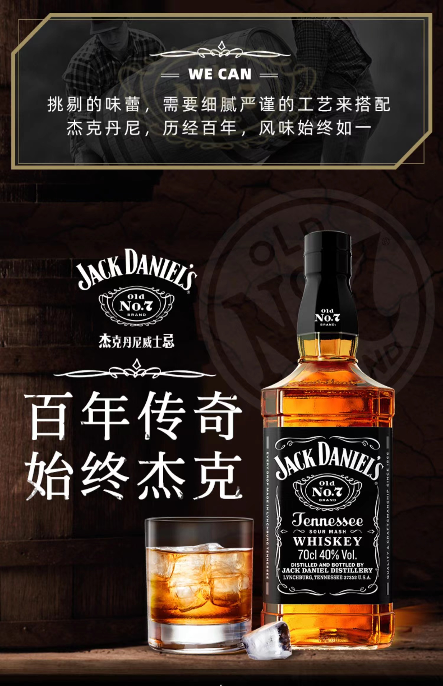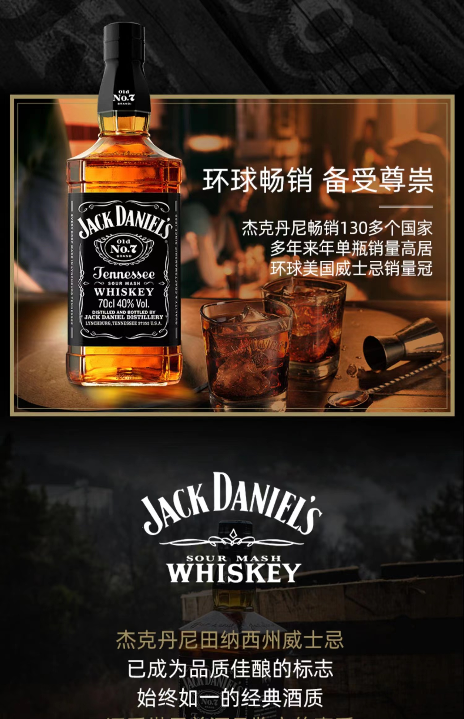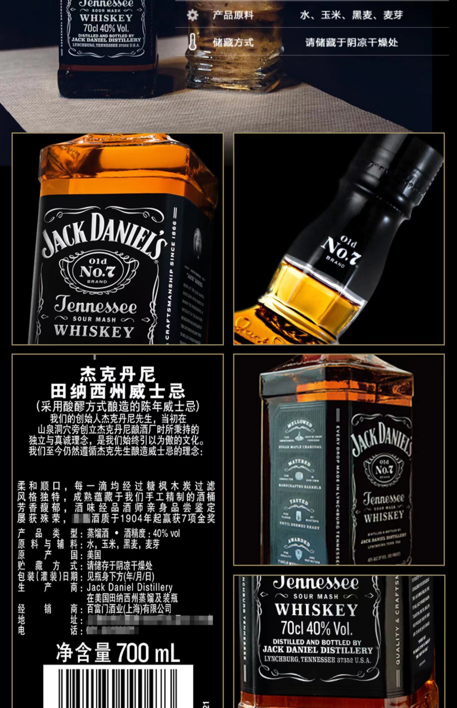 杰克丹尼田纳西州威士忌 Jack Daniel's 美国原装洋酒 40度700ml