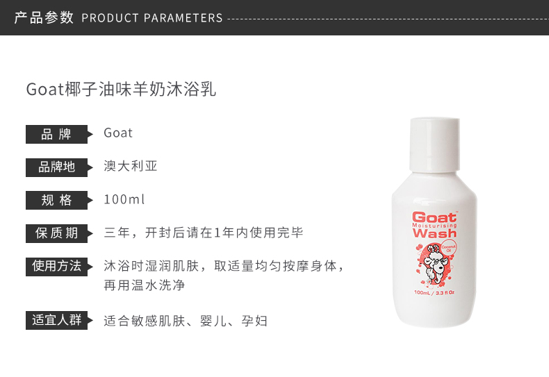 【孕婴适用】保税仓 澳洲 Goat Soap 山羊奶椰子味沐浴露旅行装100ml