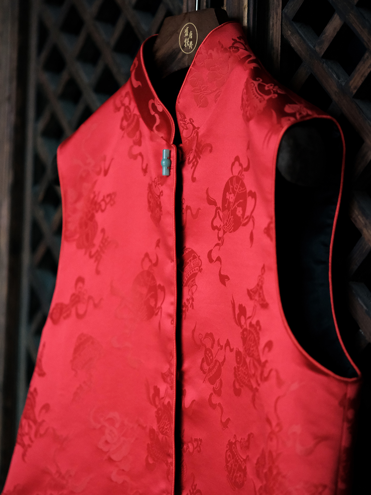 盛唐牡丹|真丝提花立领马甲 (夹棉)