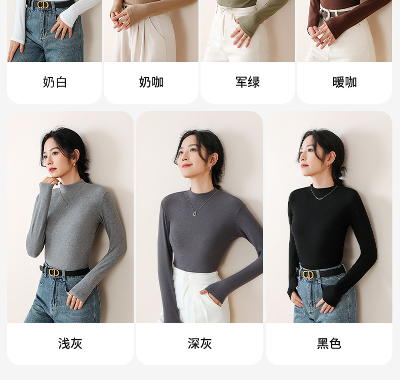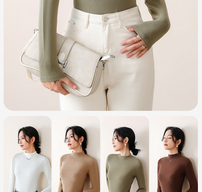 【时尚百搭❗️7A抗菌半高领长袖】高弹亲肤,修身显瘦,蓄热升温,打底衫新款保暖内衣女上衣内搭秋衣可外穿保暖衣