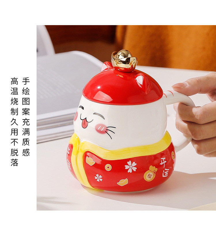 【招财猫限定款,陶瓷杯礼盒套装】杯子+勺子+杯盖礼盒装,送礼更有范,呆萌萌小福猫真的惹人爱QQ伴手礼新年礼盒年货礼盒
