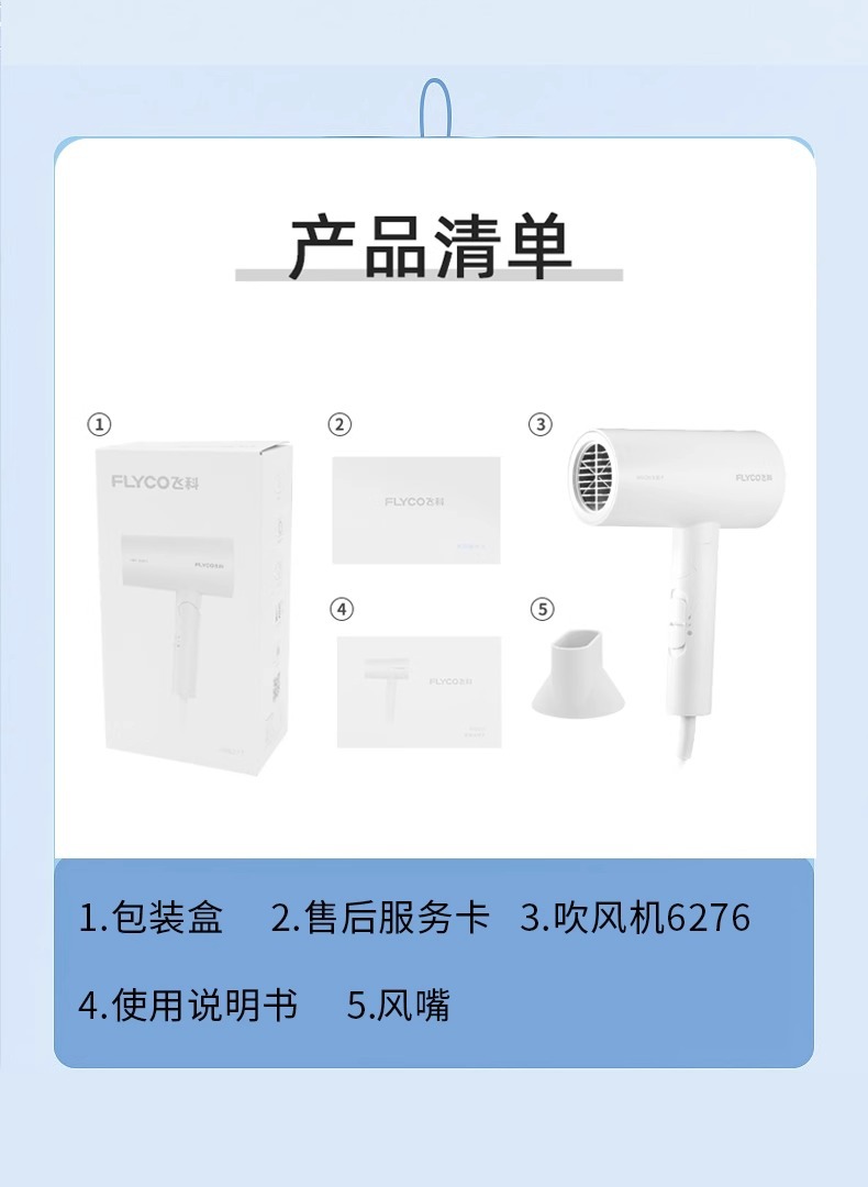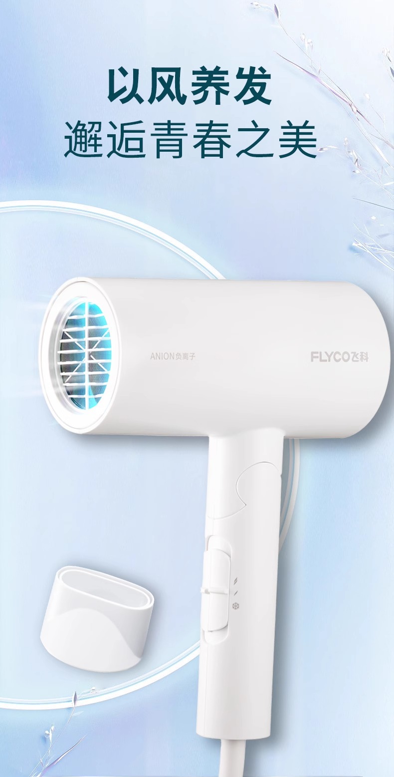 飞科正品吹风机折叠1800W负离子恒温护发学生宿舍家用电吹风6276