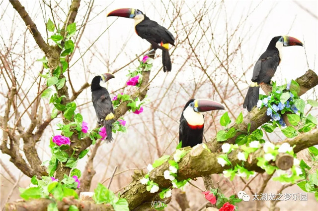 孔雀、大嘴鸟和金刚鹦鹉俨然成了梅园最美风景