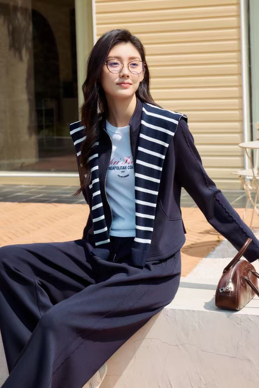 伯妮斯茵 | 时尚单品 黑白条纹针织披肩 外搭神器 提升造型层次感 通勤出游款 SZ3WAL65 - 帝释青披肩