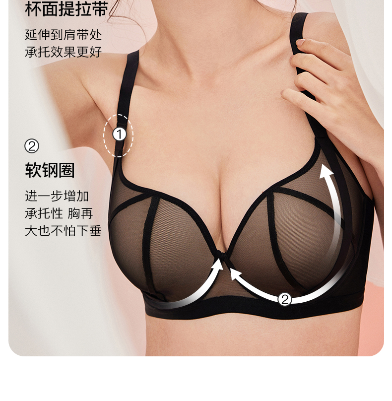 梦芭蒂大胸显小聚拢显圆内衣女软钢圈薄款文胸收副乳调整型胸罩小妖精