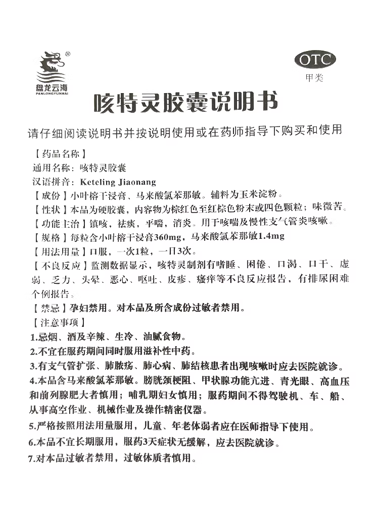 【盘龙云海】 咳特灵胶囊 0.4g*20粒/盒