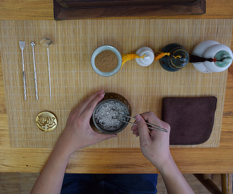 香云盖人一直以来专注致力于纯天然养生香品的传承和革新,在古法基础上精选调和多种香材,按性味属性进行科学配伍,做出符合当下时宜的天然篆香粉,把香文化的芬芳美好带给人们,让自己和亲友都馨香四溢、身心宁静、和顺安康! 打香篆是中华民族智慧和涵养的细腻表现,是当代人修养身心,凝神聚气的高级休闲方式。在打香篆过程中需要精准的把握好分寸和力度,唯有静心、细心、韧性才能打出好香篆。 一炉篆香,缕缕香烟,空寂悠远,飘洒着淡雅的香气,魅力无穷,让人在芳香气韵中静下心来,享受生活中的美。 |