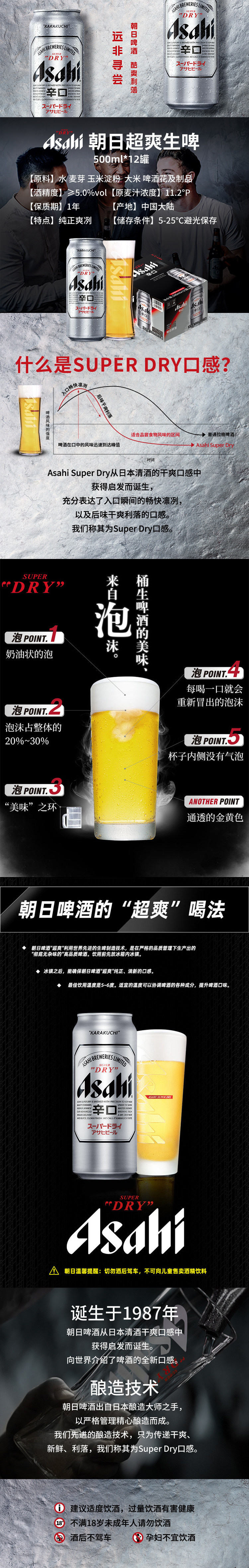 ASAHI/朝日啤酒超爽系列生啤500ml/罐酒精度4.8 度