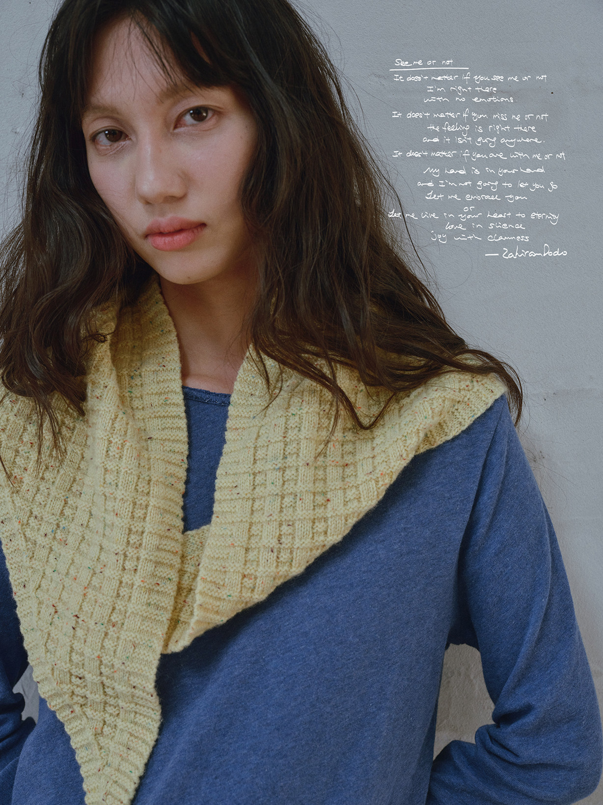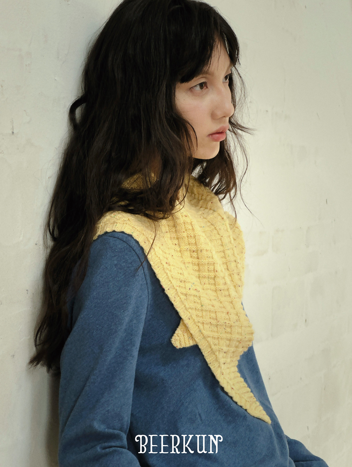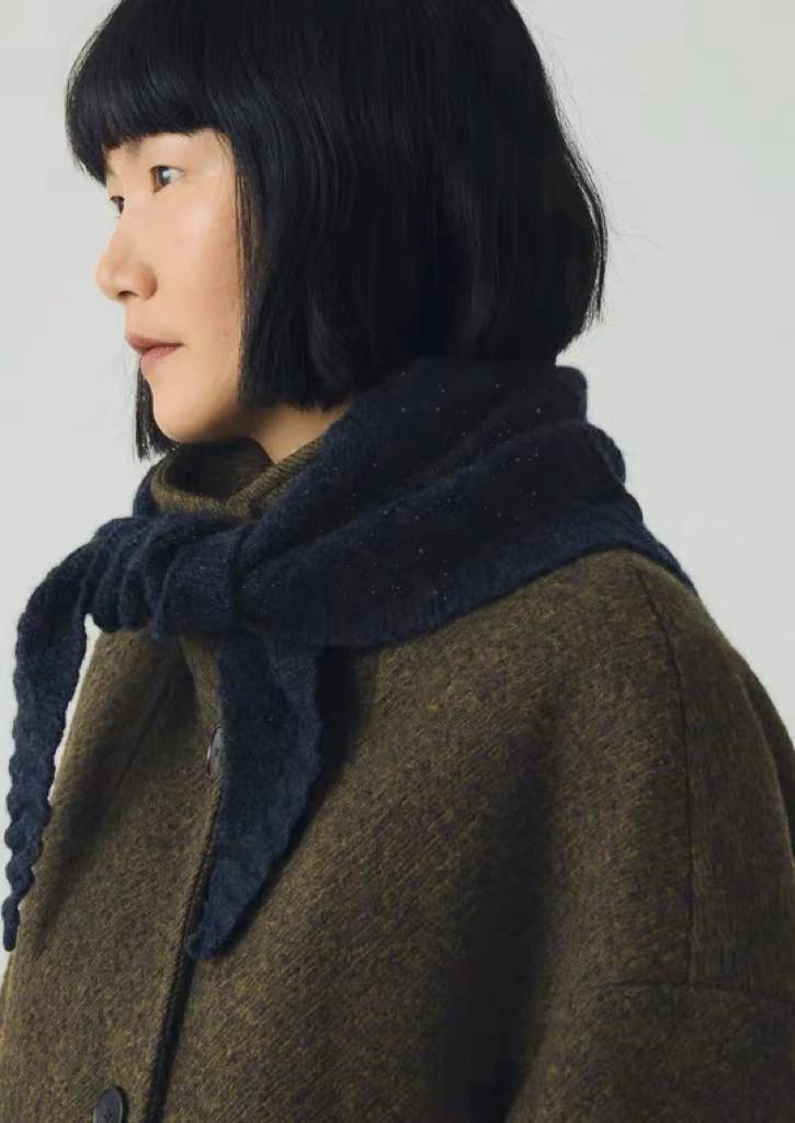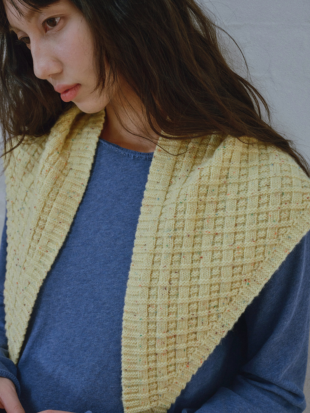 [特价]美利奴羊毛多彩三角巾 toast手工感编织格 藏蓝彩点/贝壳粉/嫩黄彩点