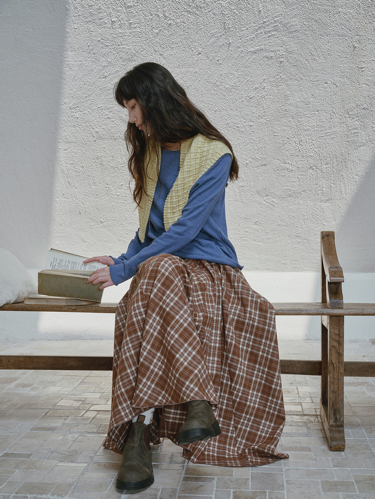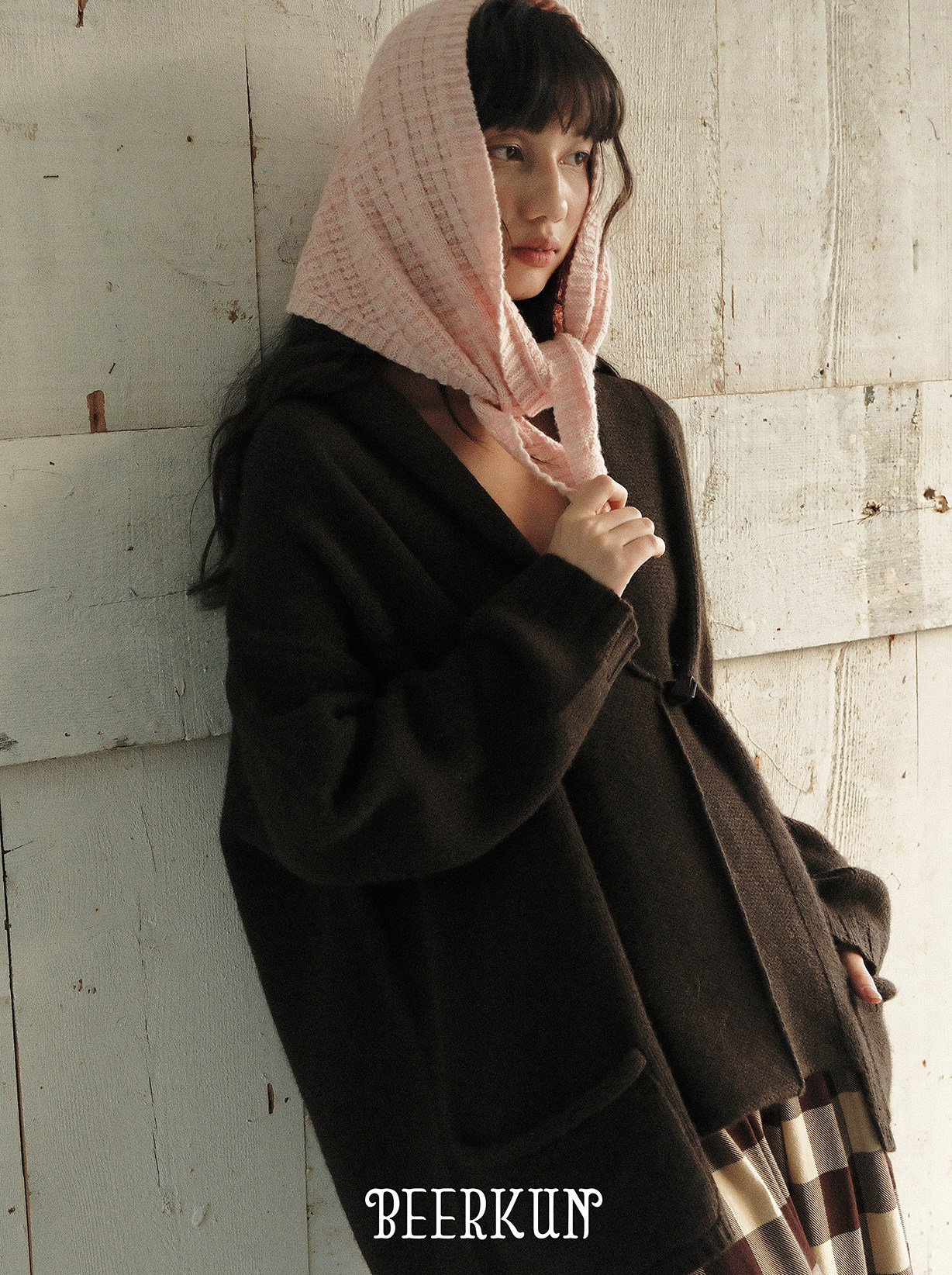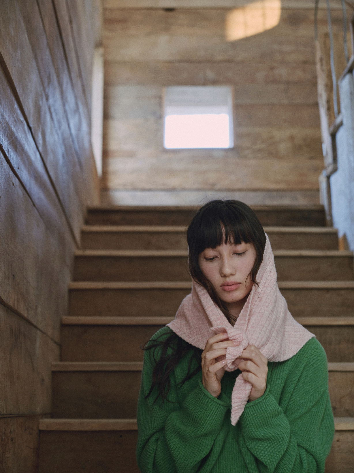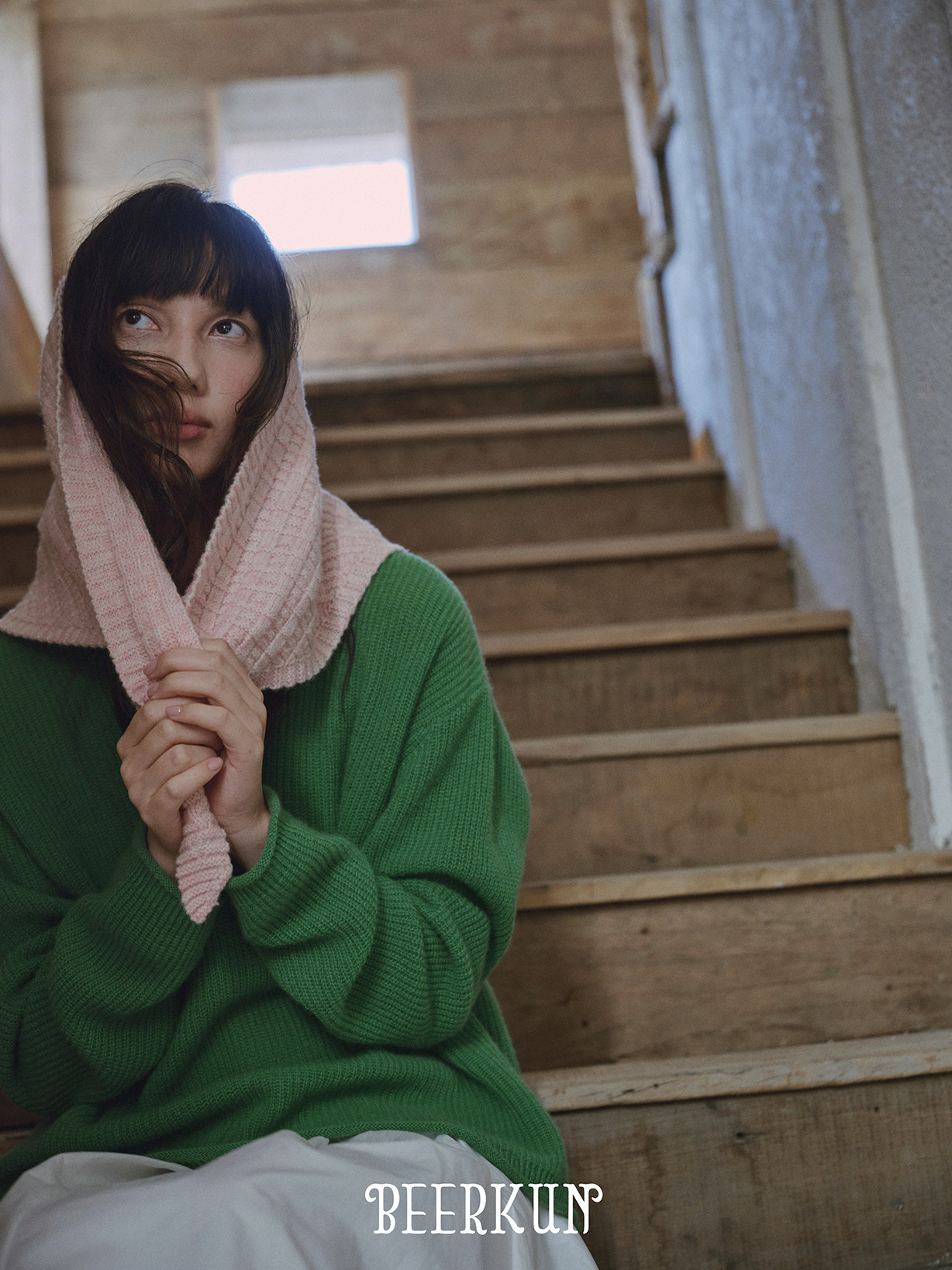 [特价]美利奴羊毛多彩三角巾 toast手工感编织格 藏蓝彩点/贝壳粉/嫩黄彩点