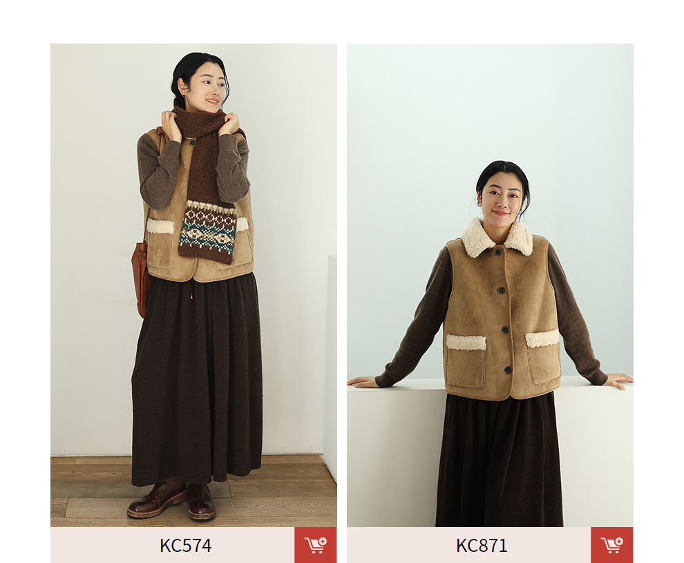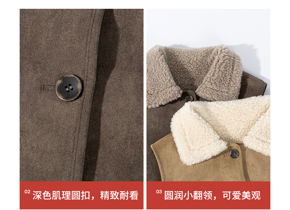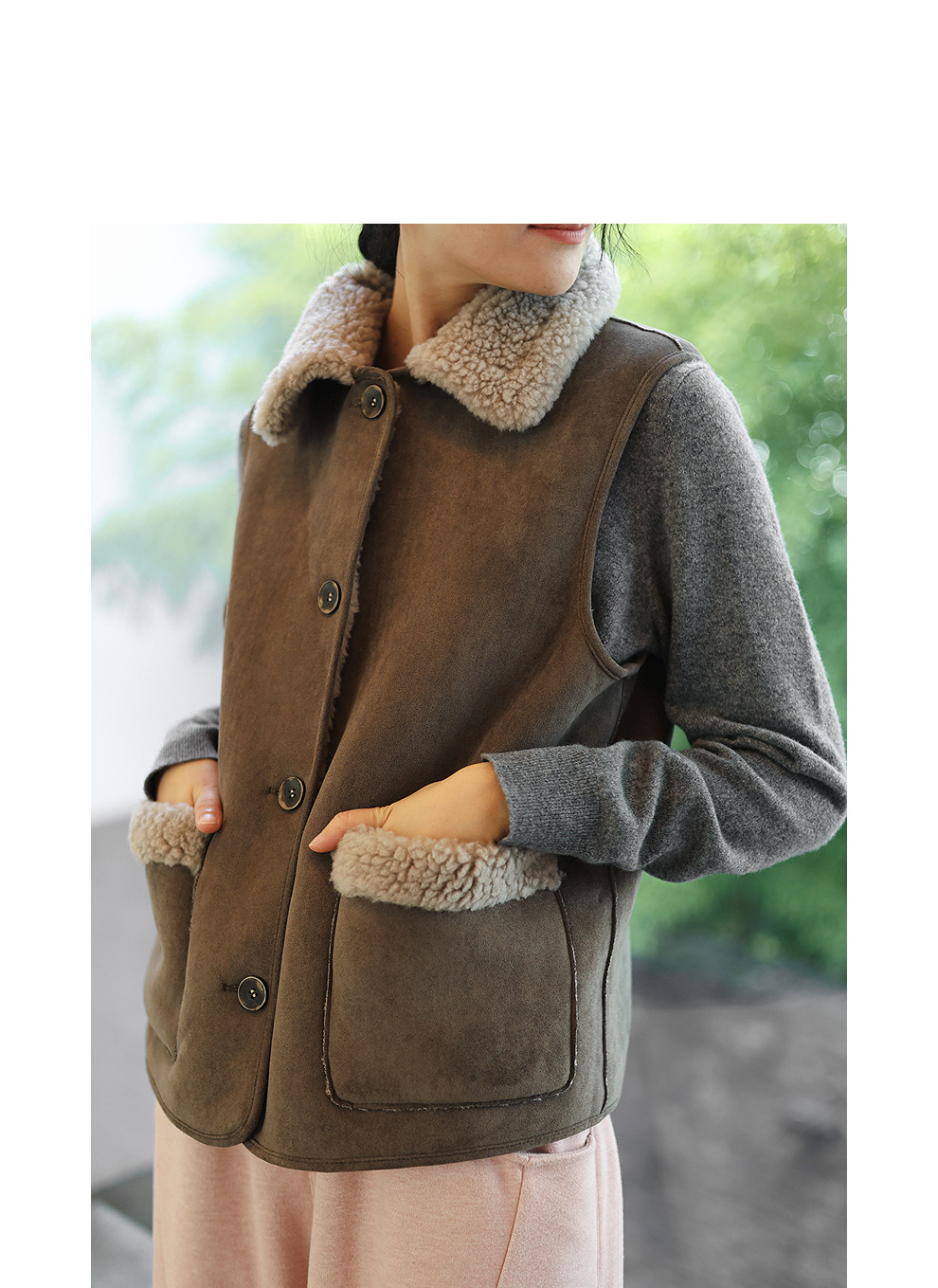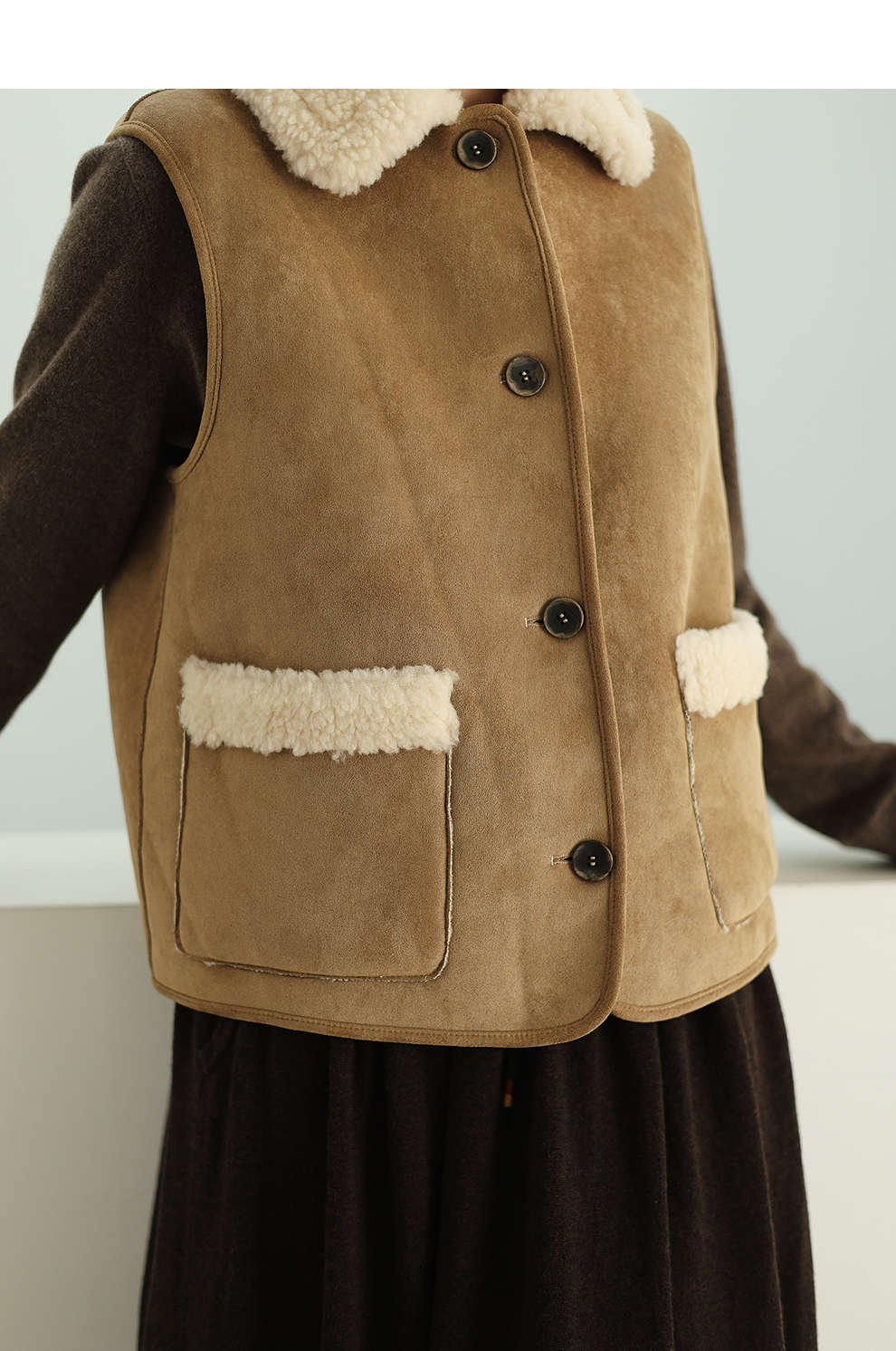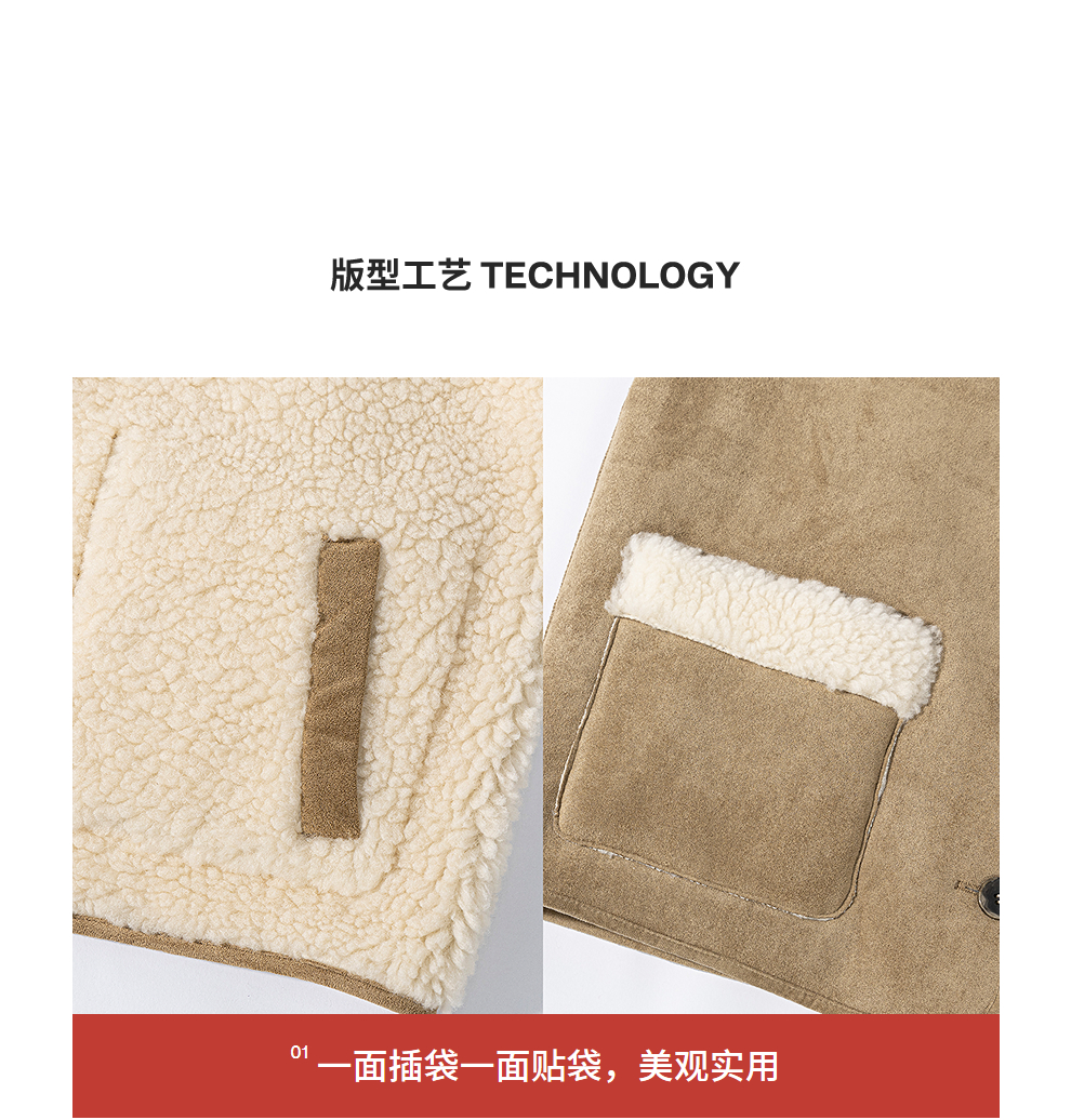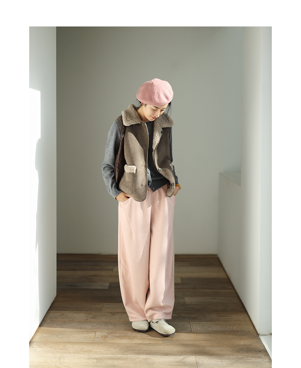 特绽放876朵/纯羊毛马夹双面穿麂皮羊羔毛撞色拼接叠搭马甲冬新款