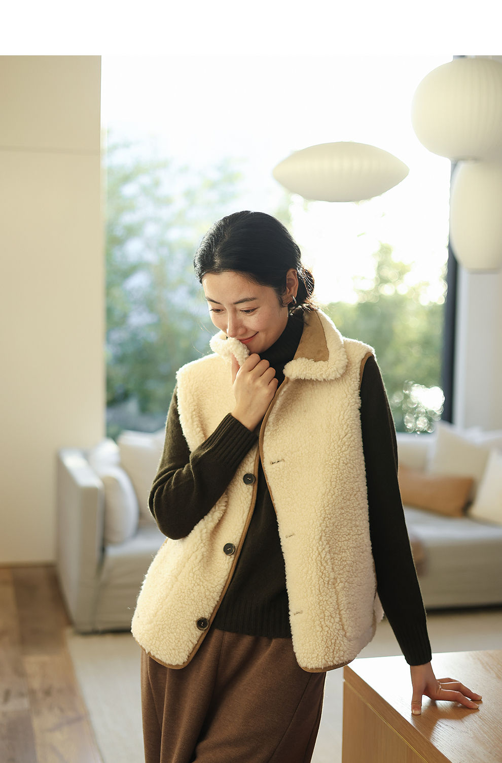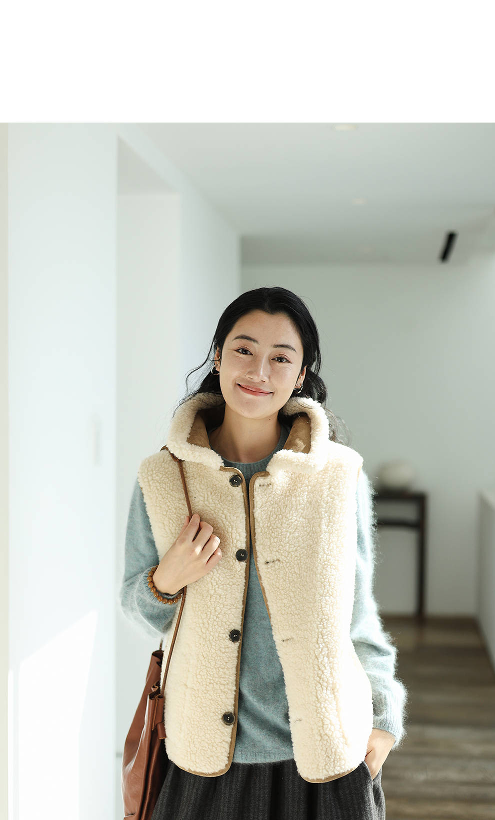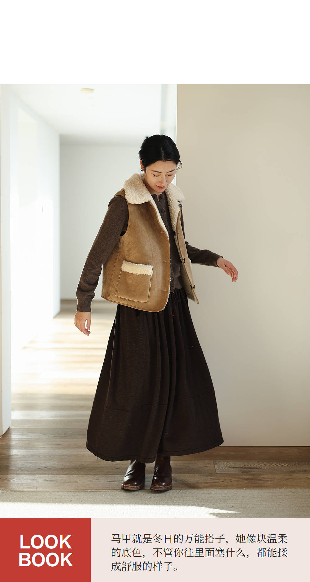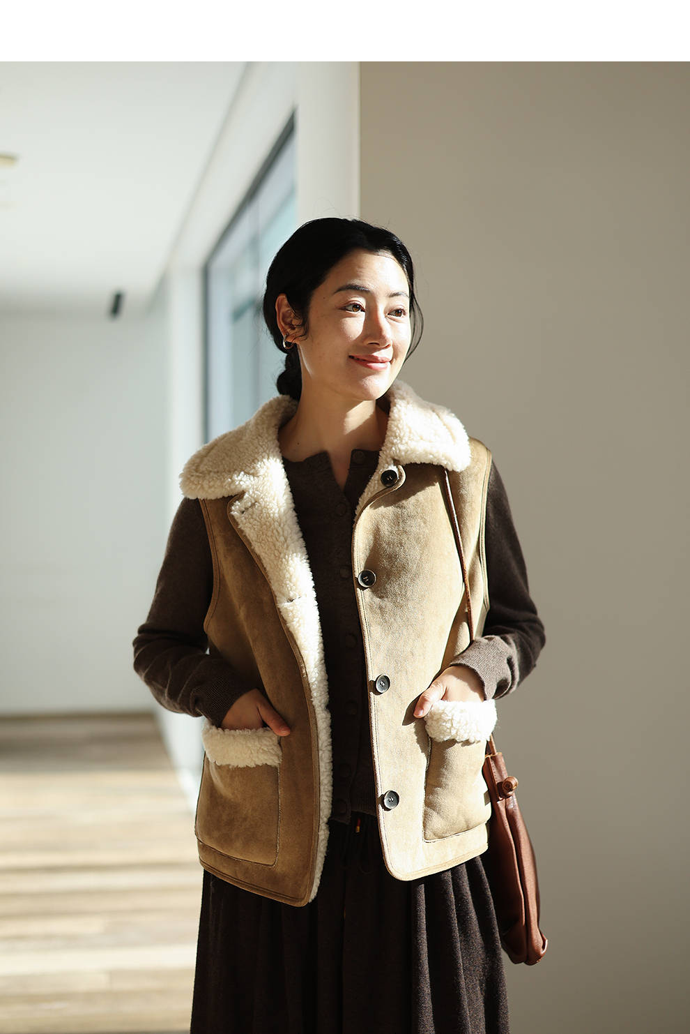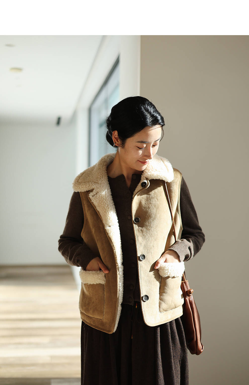 特绽放876朵/纯羊毛马夹双面穿麂皮羊羔毛撞色拼接叠搭马甲冬新款