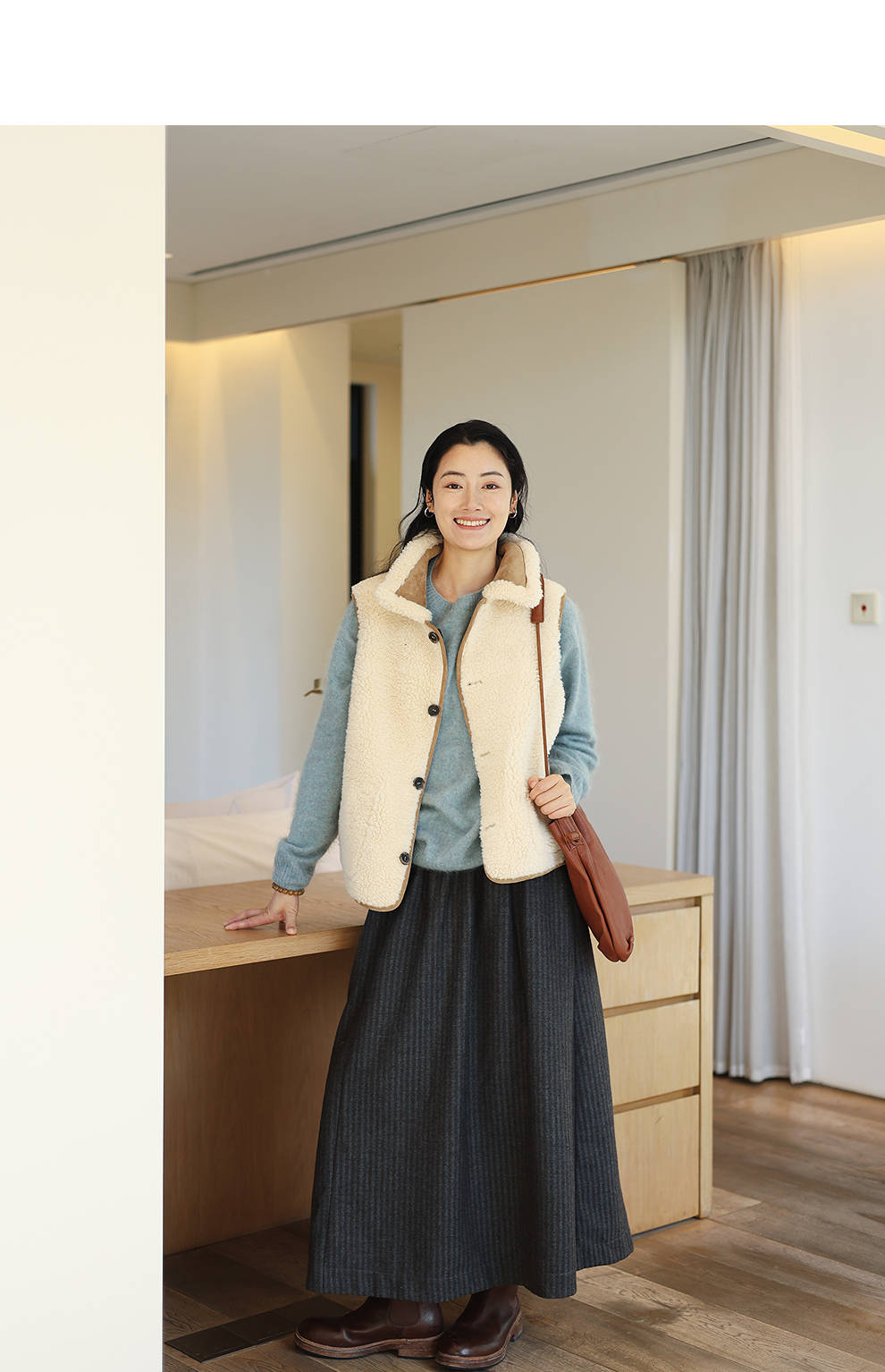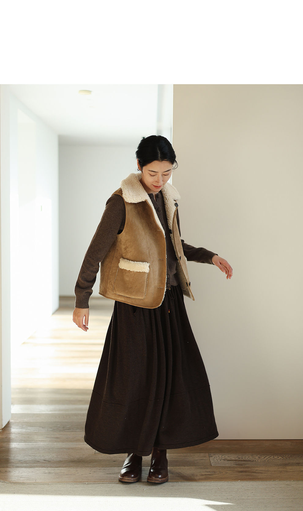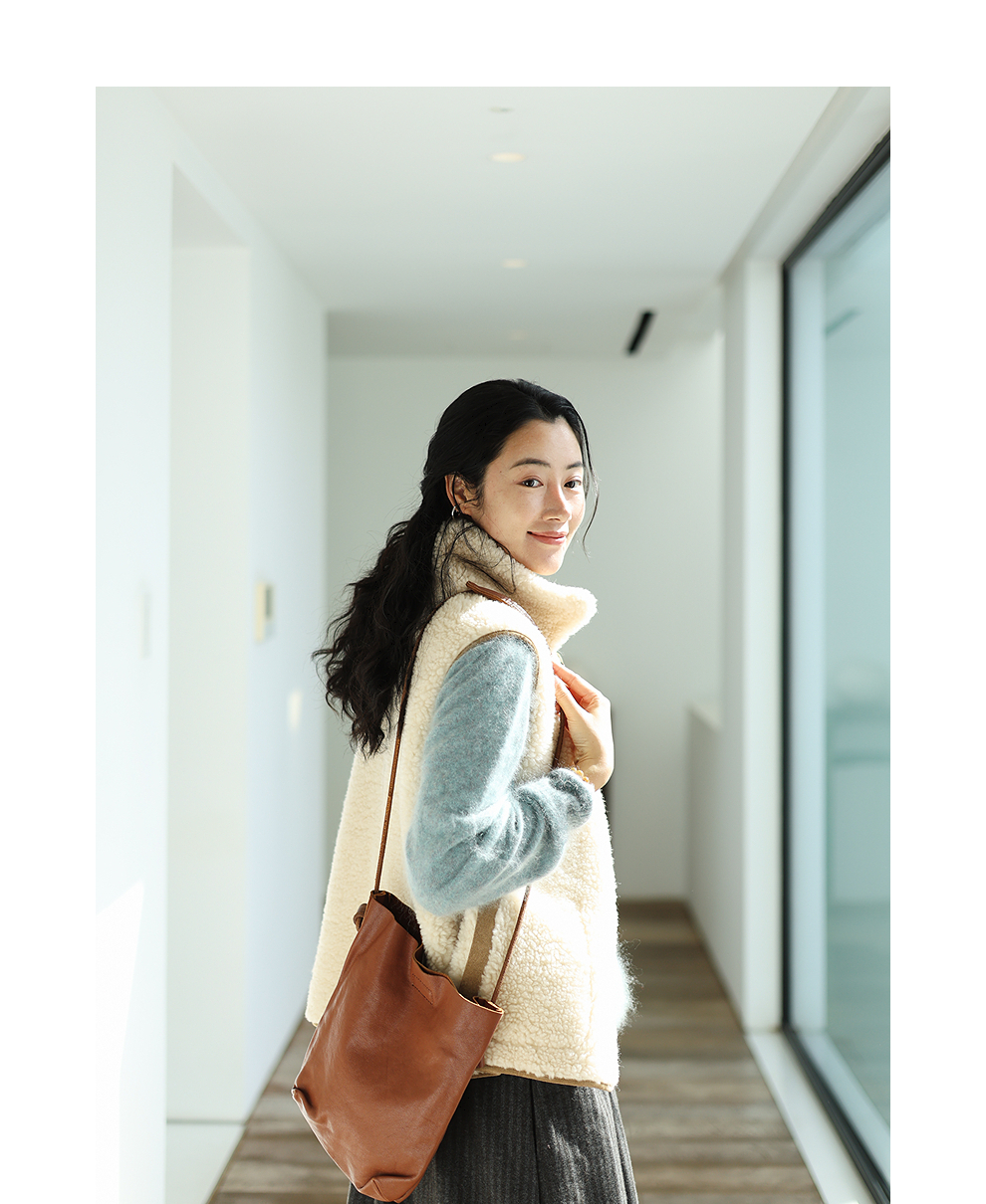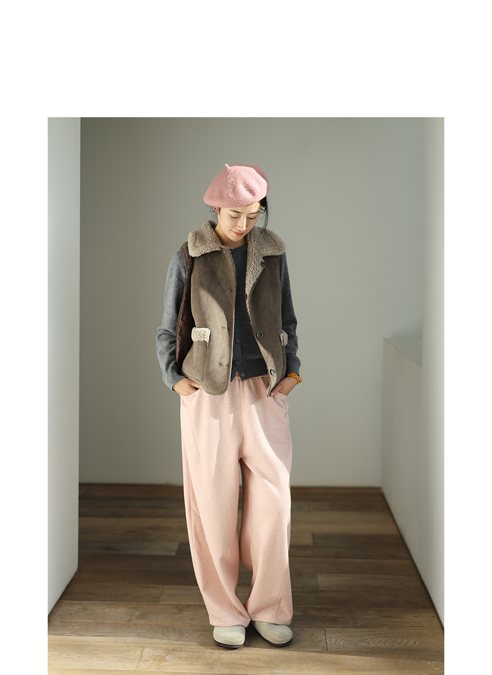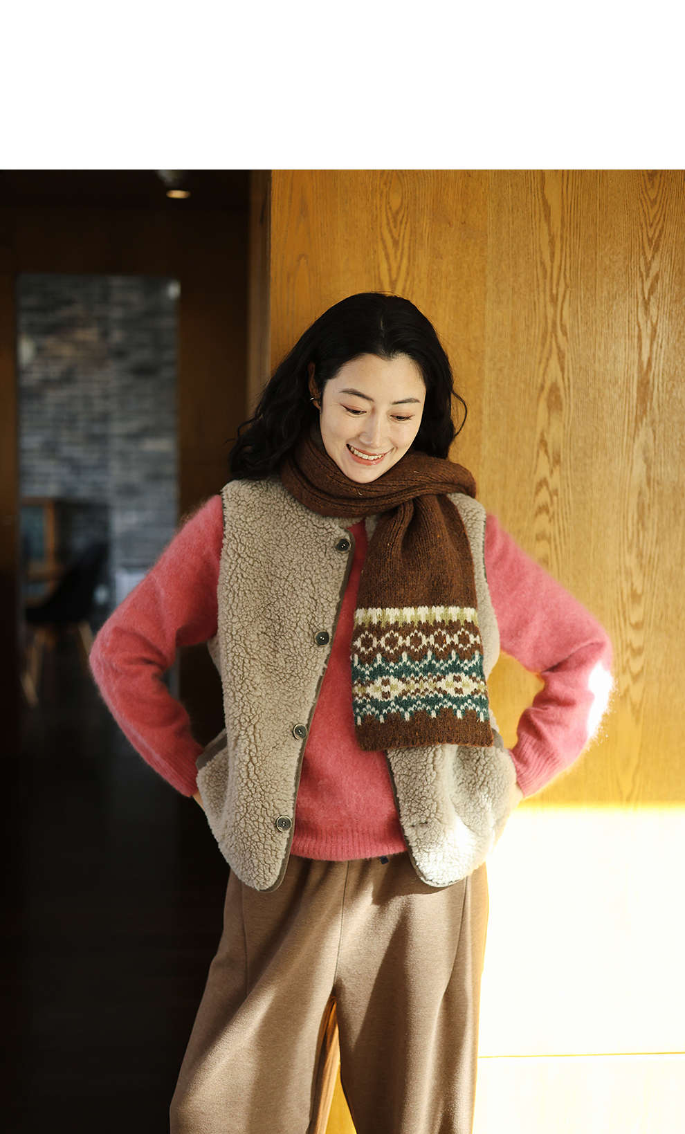 特绽放876朵/纯羊毛马夹双面穿麂皮羊羔毛撞色拼接叠搭马甲冬新款
