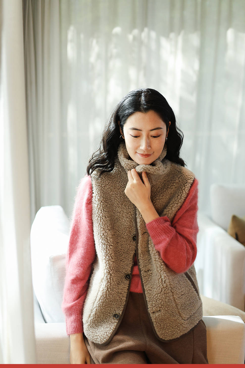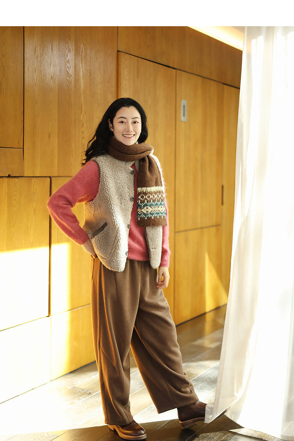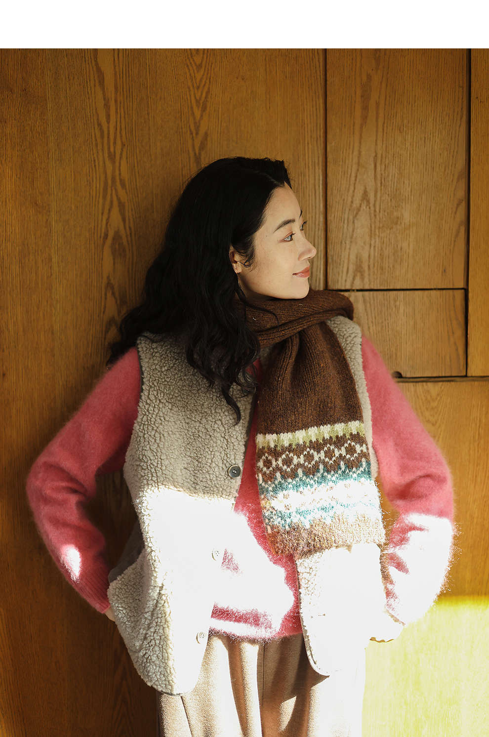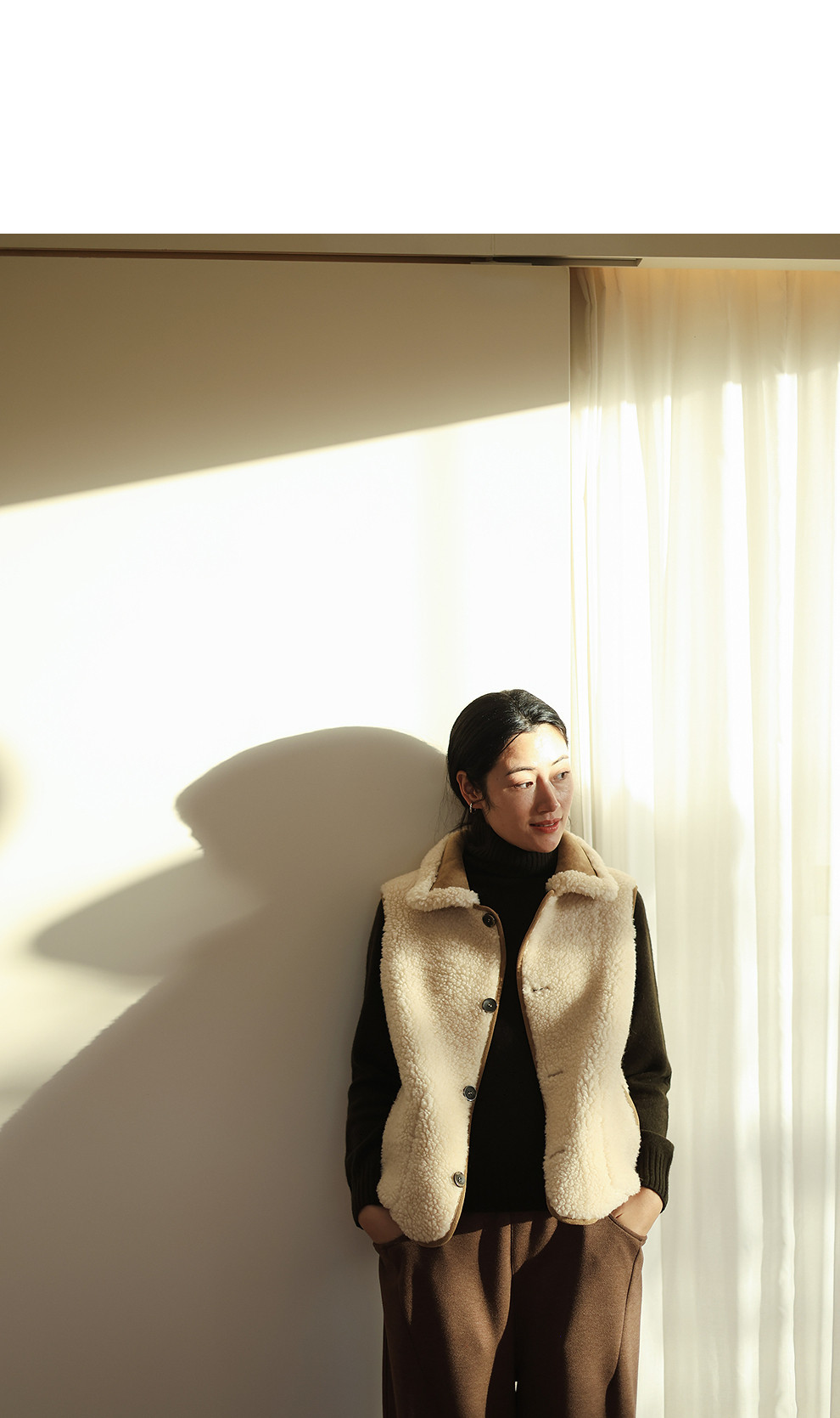 特绽放876朵/纯羊毛马夹双面穿麂皮羊羔毛撞色拼接叠搭马甲冬新款