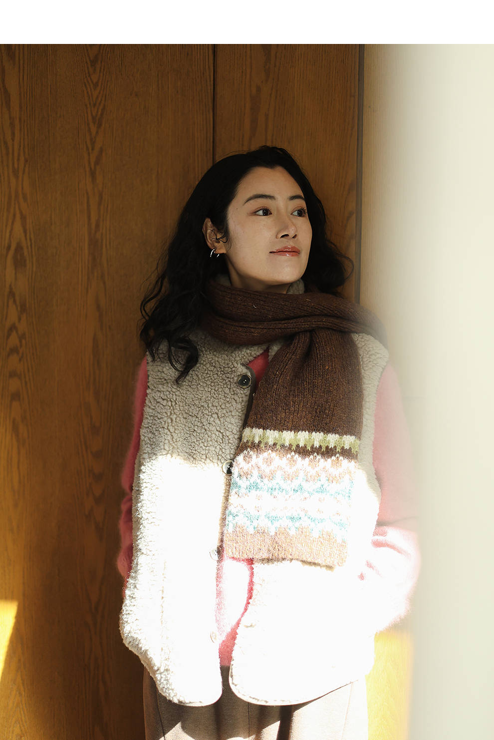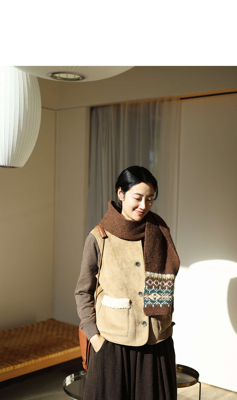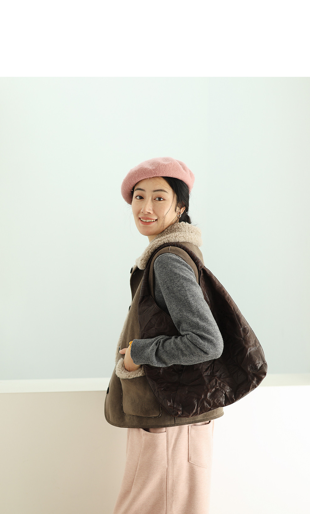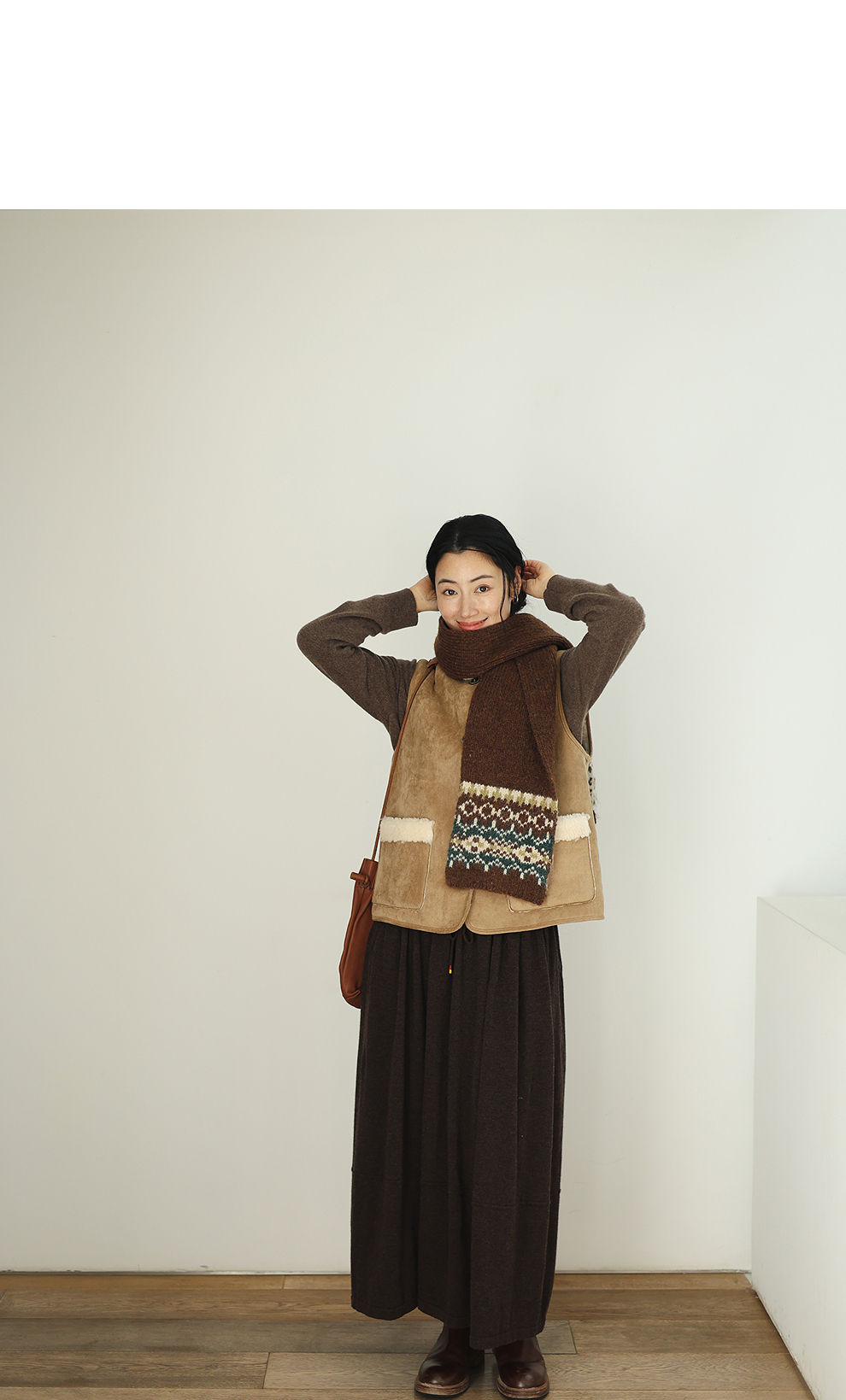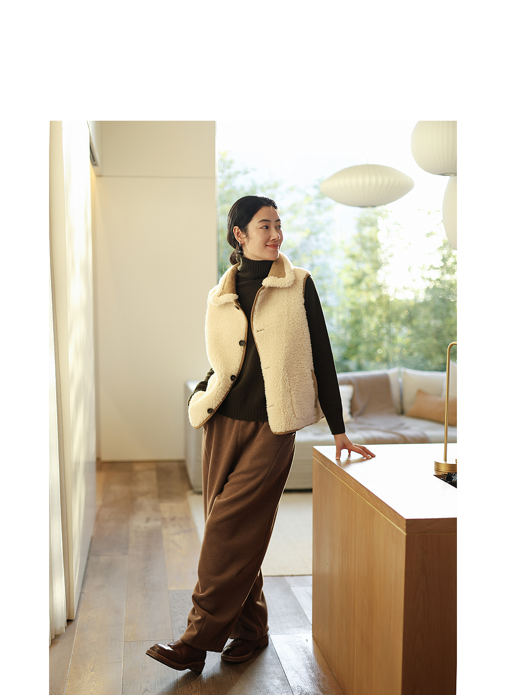 特绽放876朵/纯羊毛马夹双面穿麂皮羊羔毛撞色拼接叠搭马甲冬新款