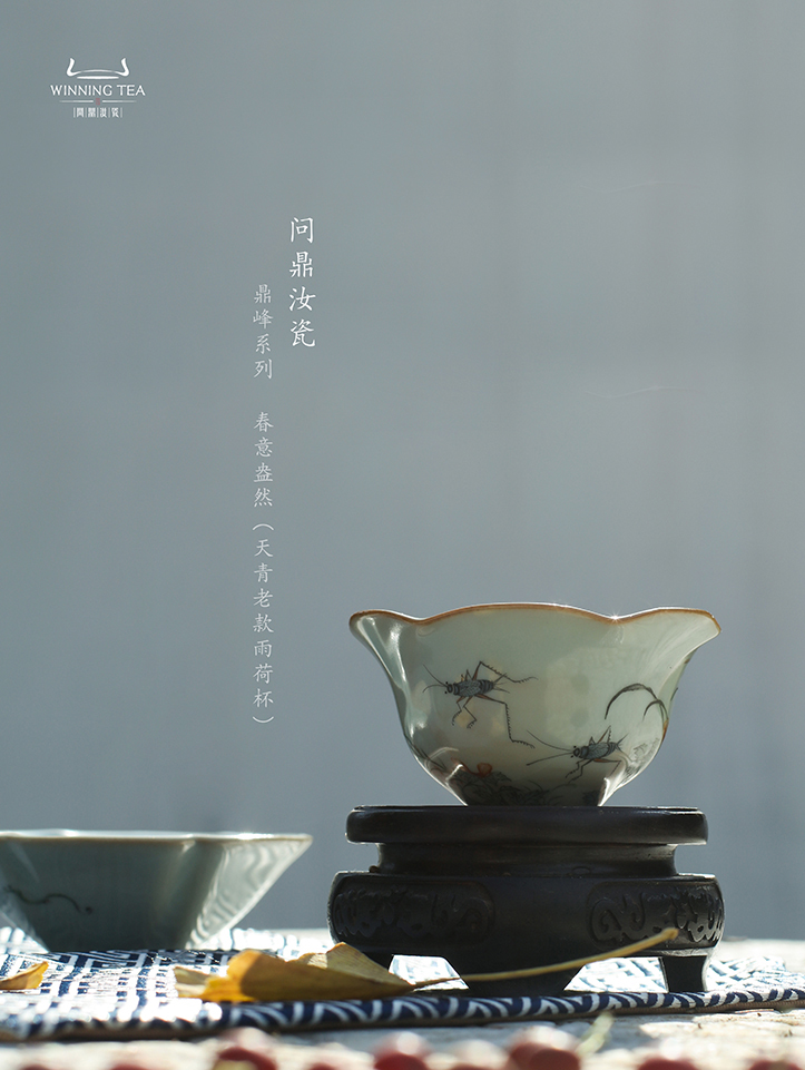 问鼎汝瓷鼎峰系列天青老款雨荷杯 (春意盎然)