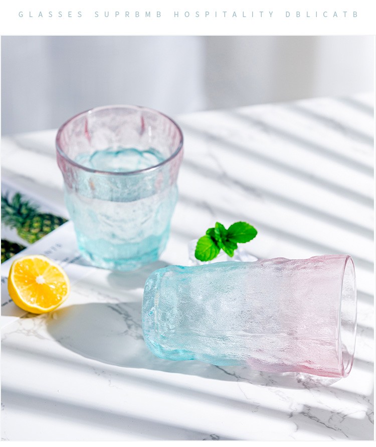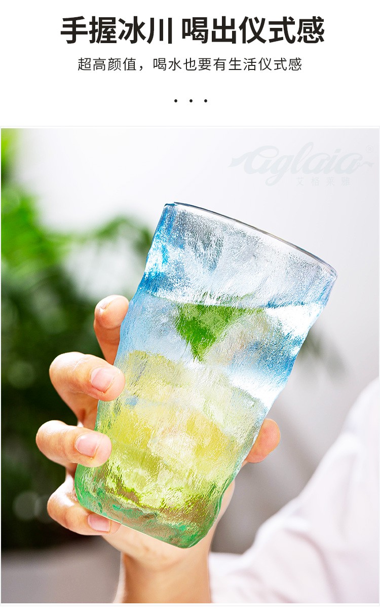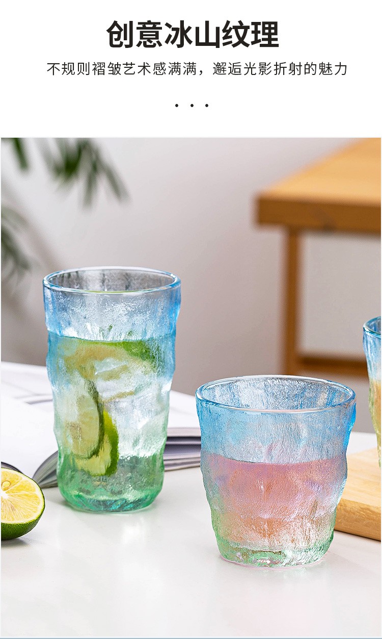日式ins冰川杯玻璃杯家用水杯咖啡杯啤酒洋酒杯子树纹女大容量渐变果汁牛奶杯 冰粉绿(两只)矮款
