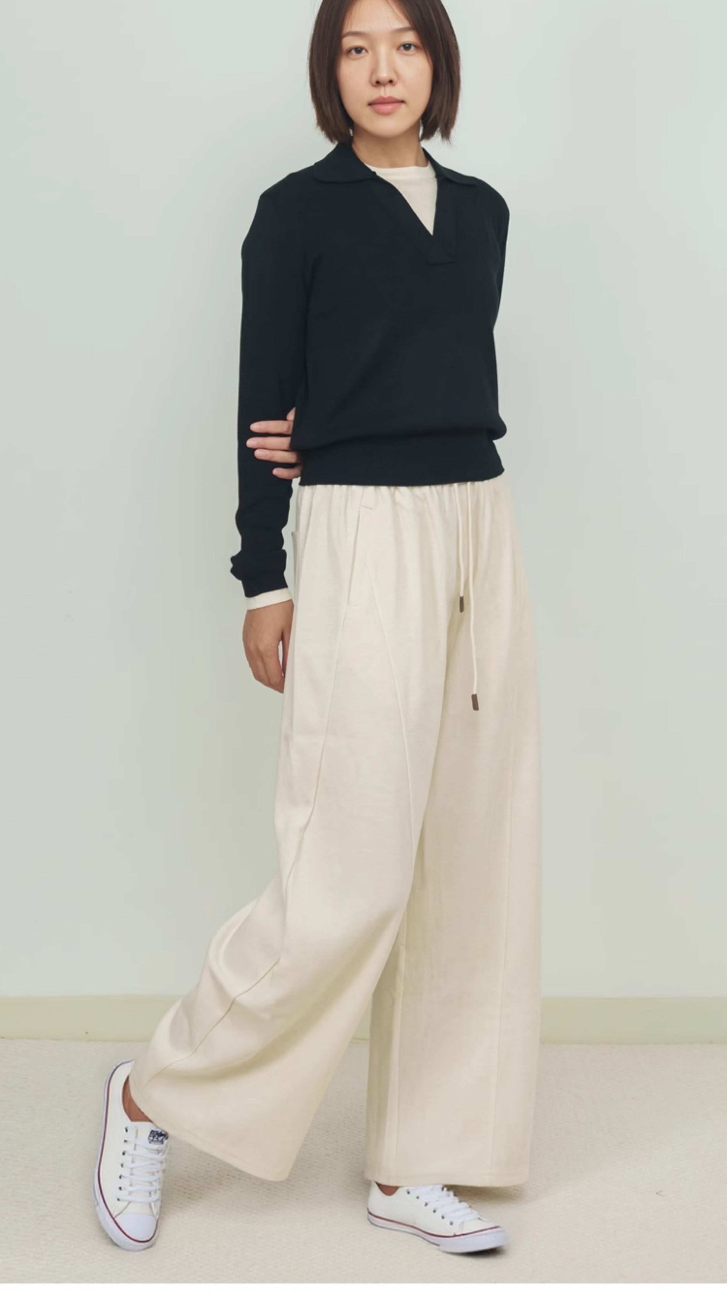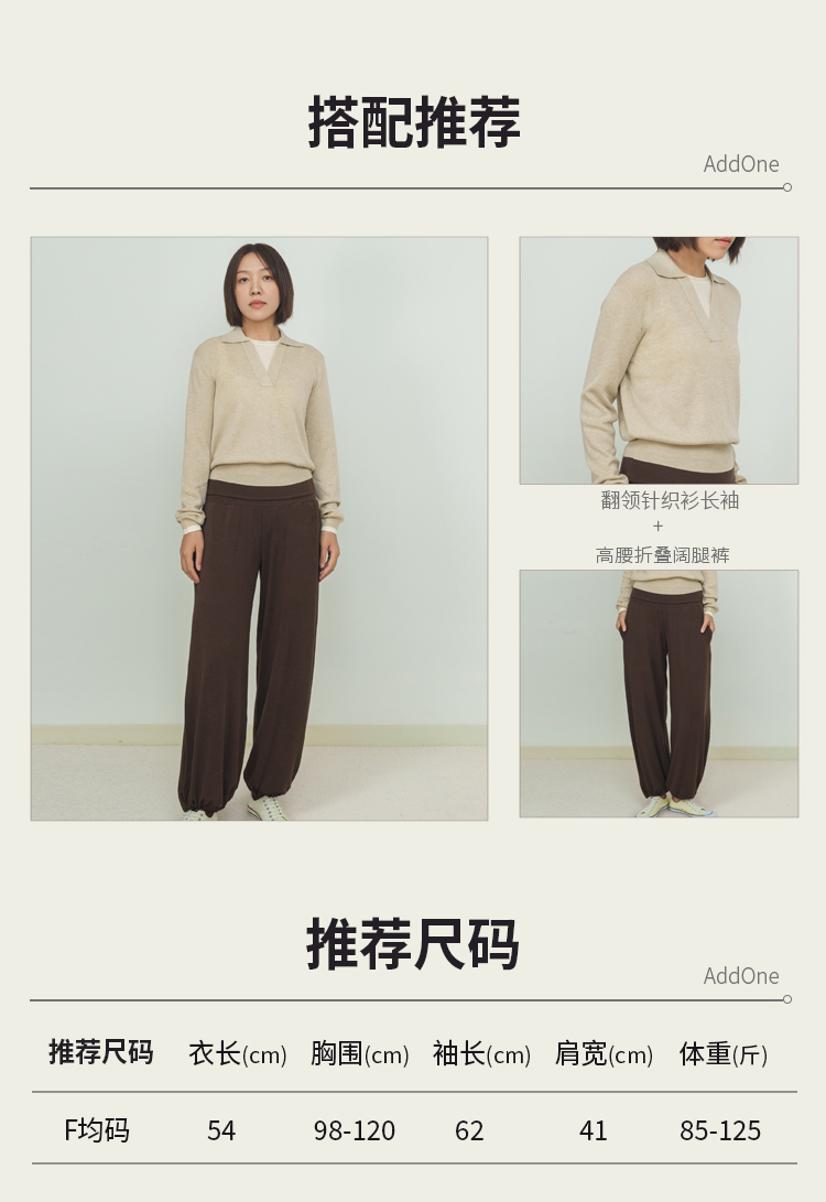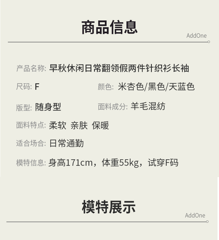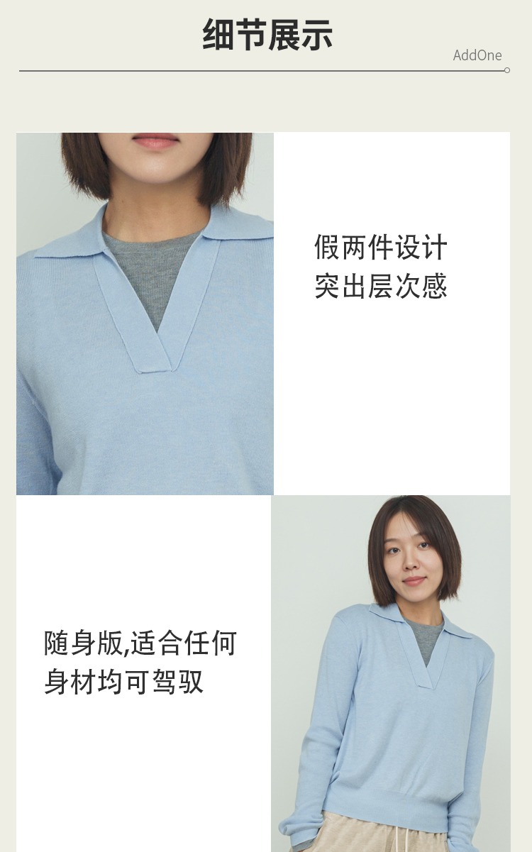 AddOne+1New早秋休闲日常翻领假两件针织衫长袖混纺羊毛柔软