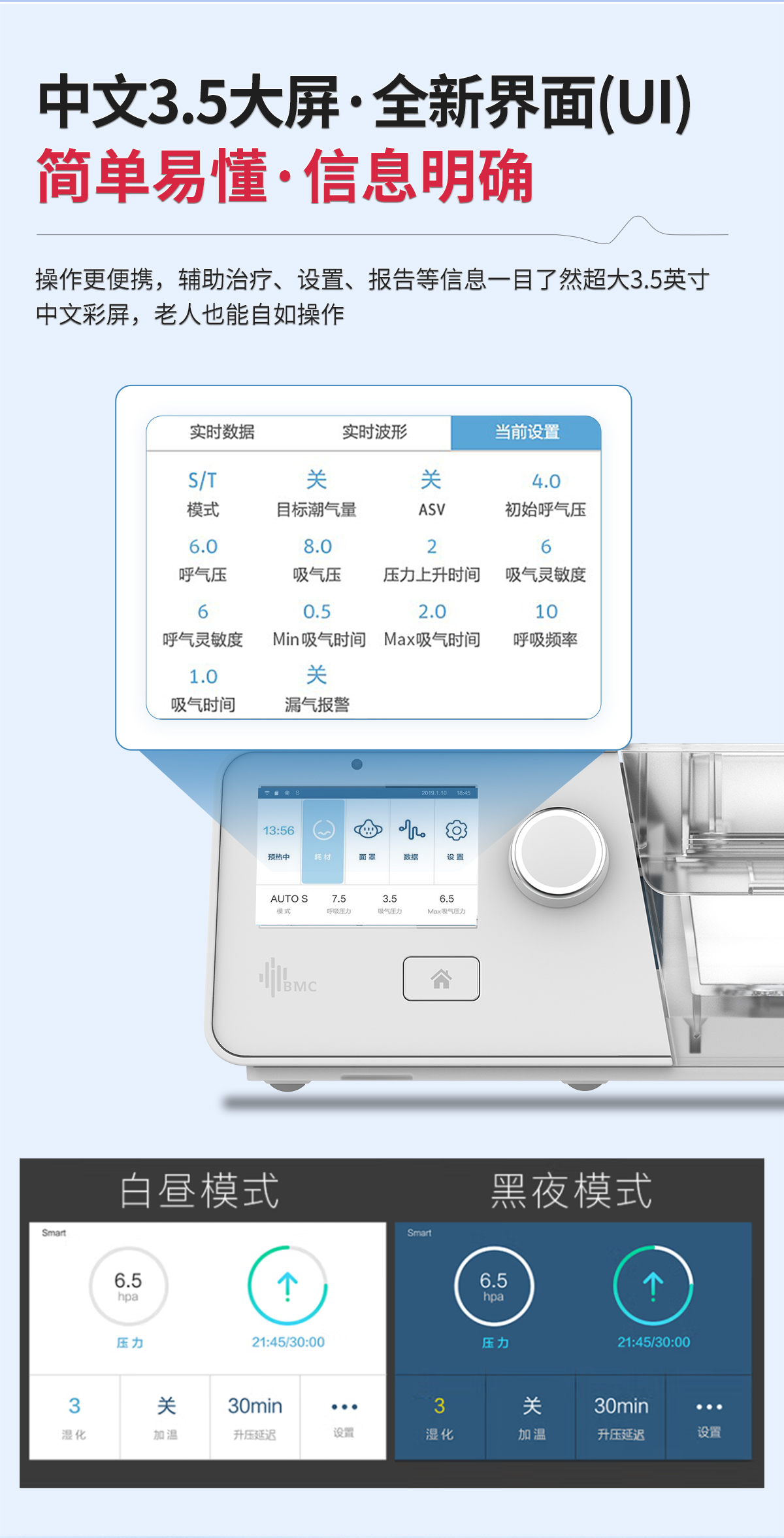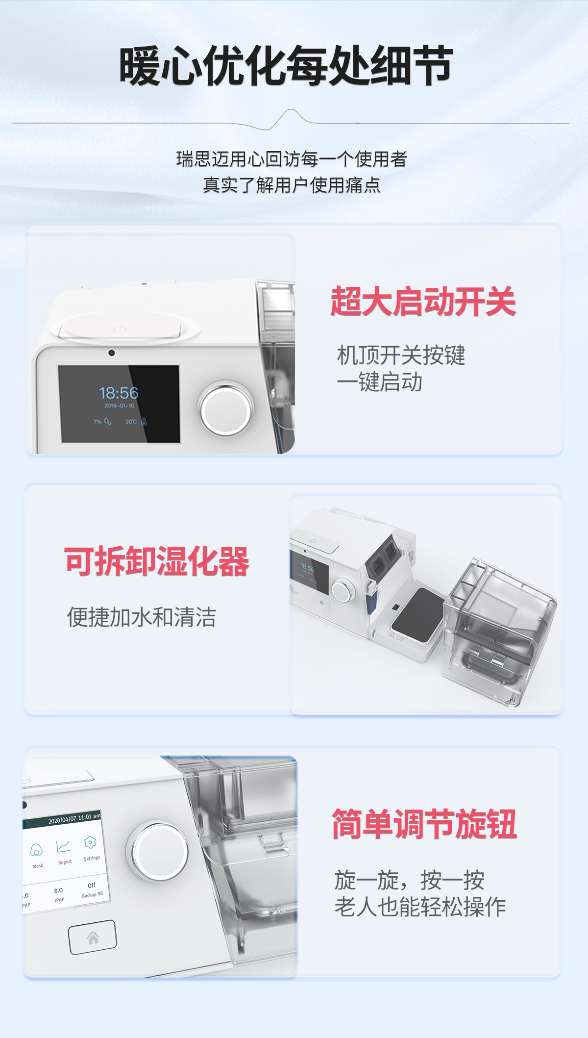 瑞迈特G3无创双水平呼吸机家用睡眠呼吸暂停慢阻肺气肿