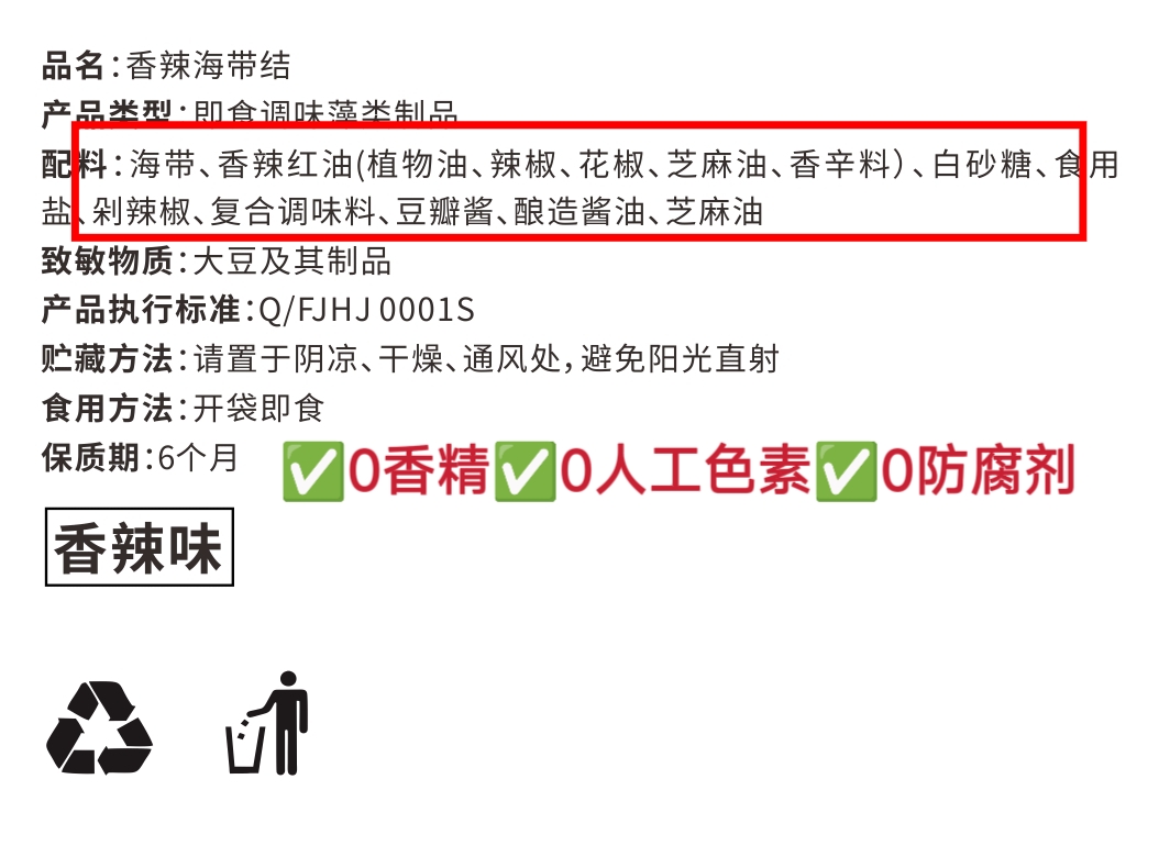 【零食专区】臻邦香辣海带结500g/盒 内含20小包 开袋即食 ·配料表超干净 0香精0色素0防腐剂 {约72小时发货 勿催单}