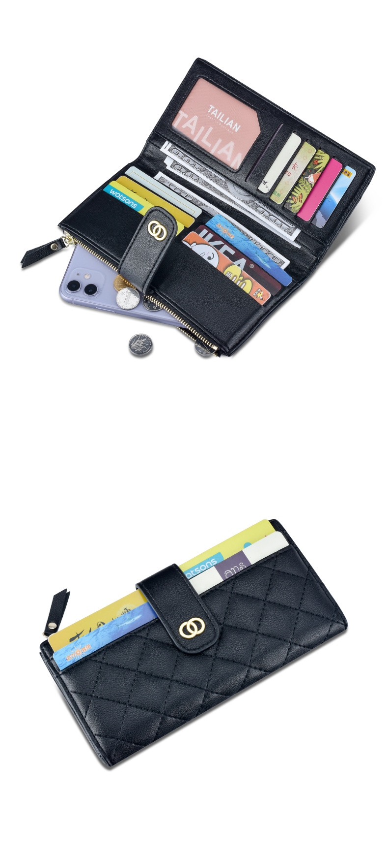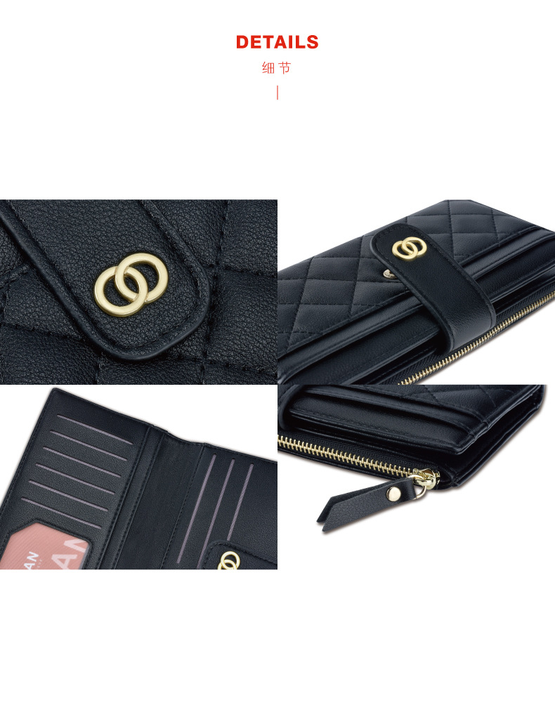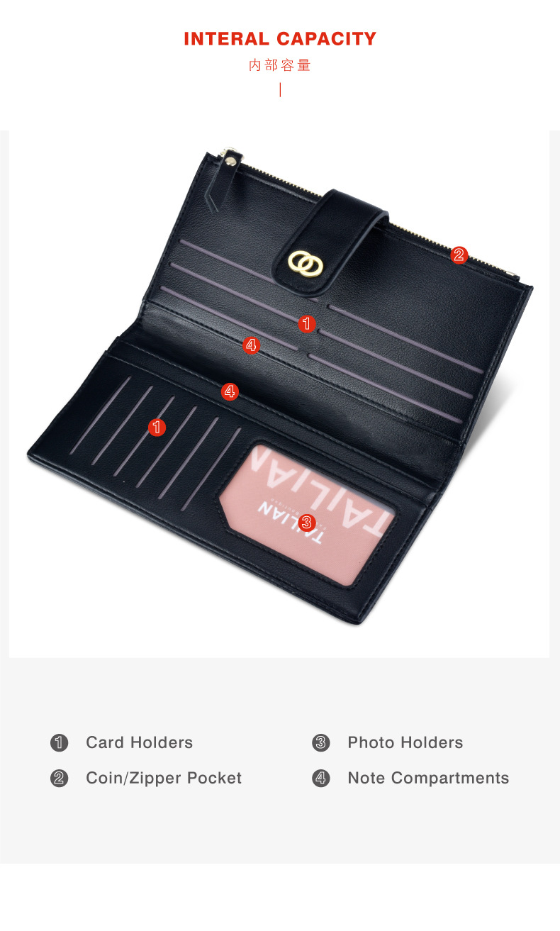 【服饰鞋包】泰莉安Tailian女士钱包绣线多卡位拉链袋长款钱包女士