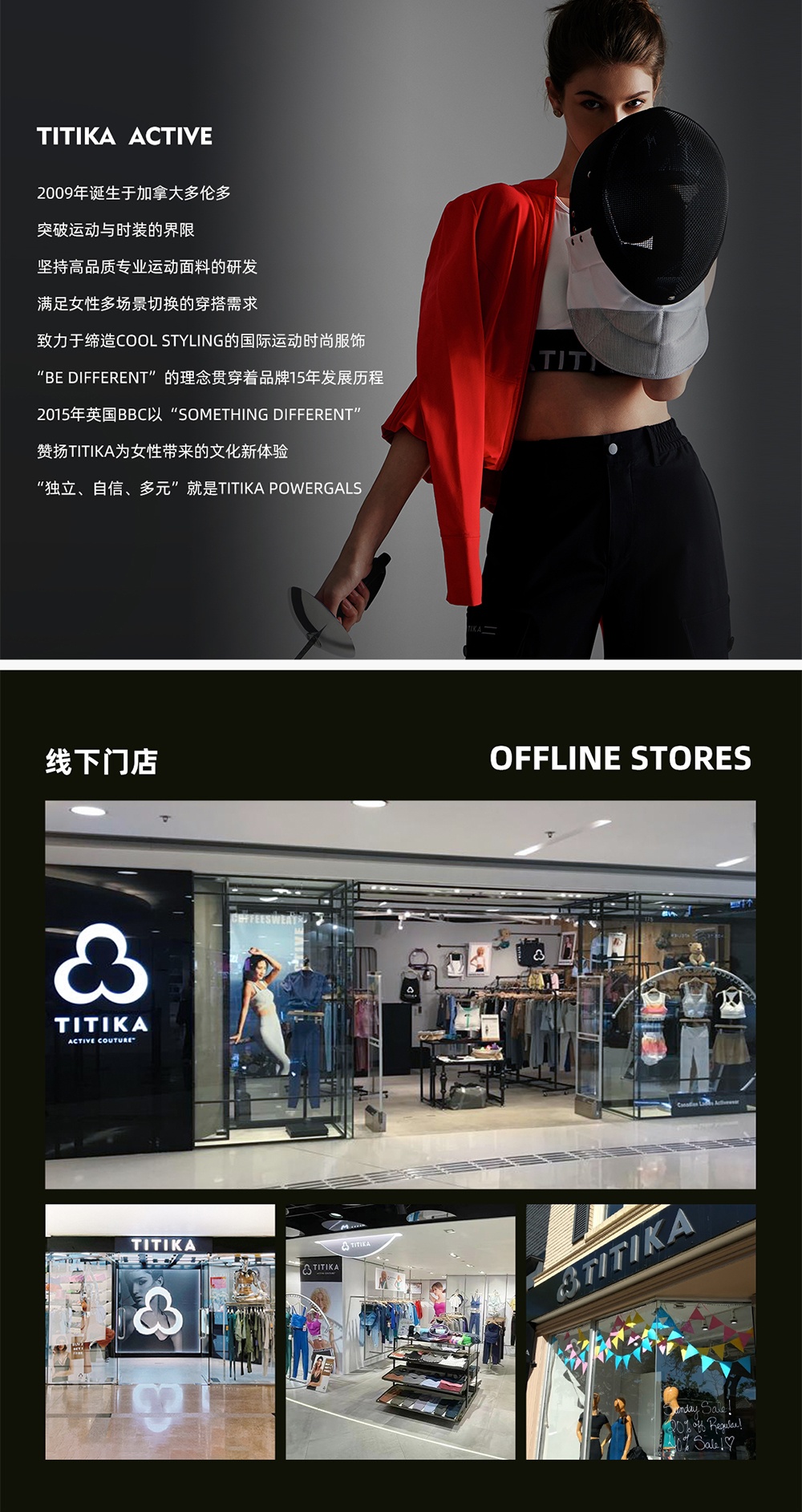 - 2009年,Titika Active Couture诞生于北美时尚之都,重新定义运动服饰,让运动时尚,前卫、性感,更宣扬一种无畏自由的生活态度。TITIKA缇缇卡不断求变,为品牌添加多种元素