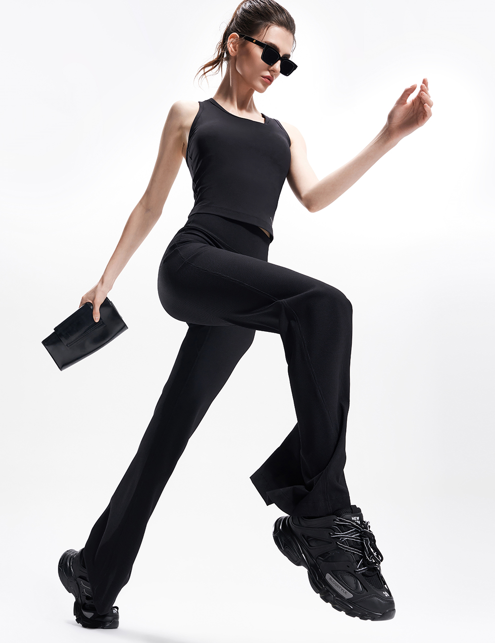 TITIKA垂顺感罗纹复古喇叭裤运动休闲户外提臀长裤JUST PEACHY11118