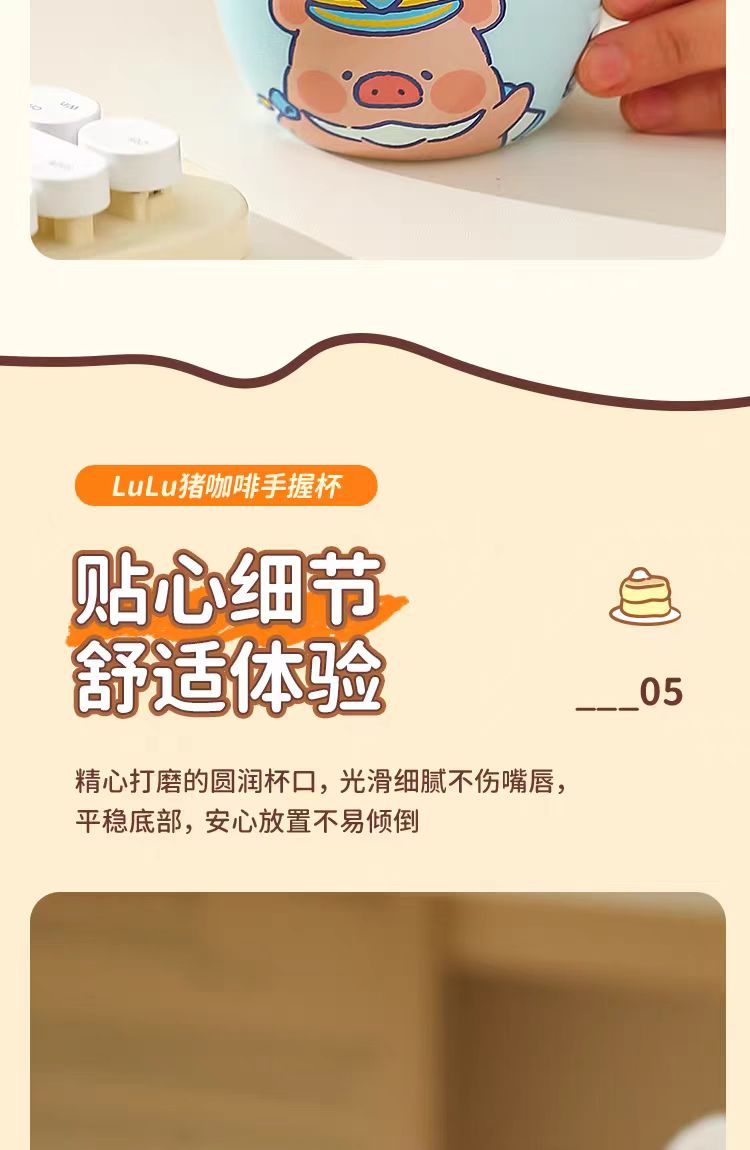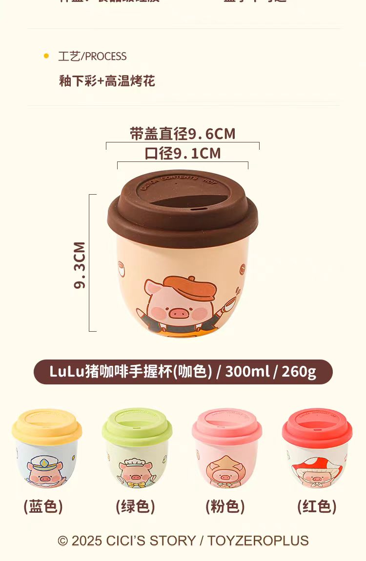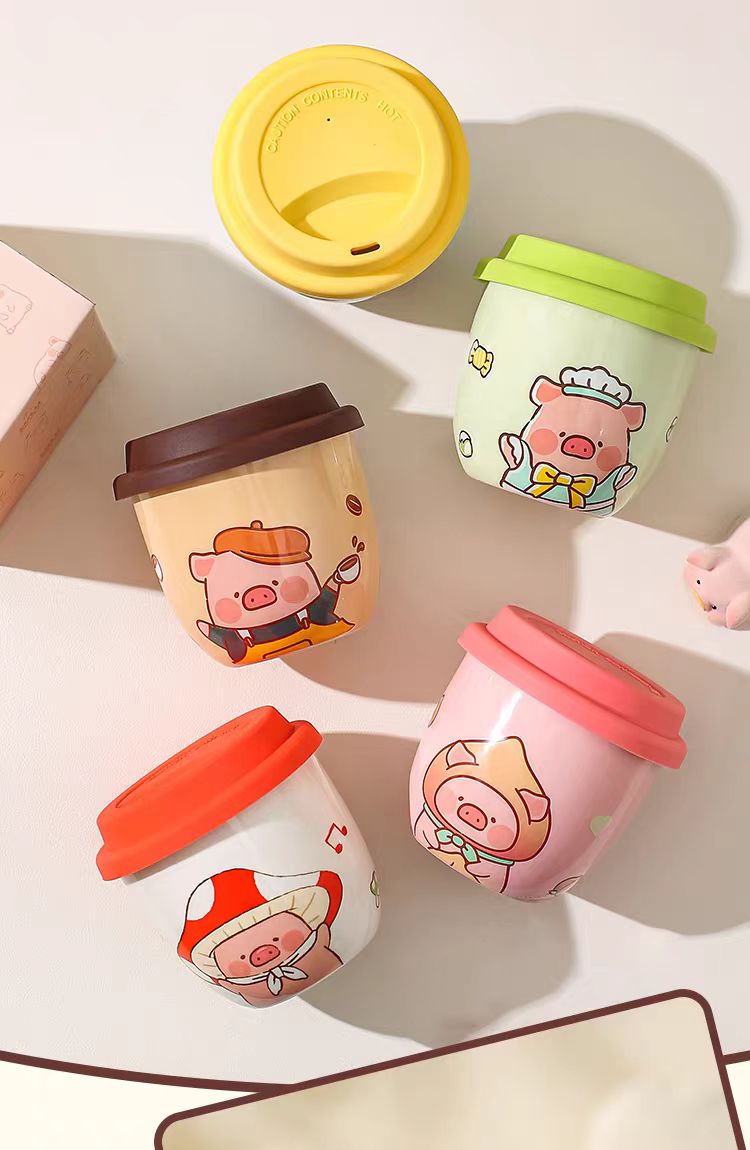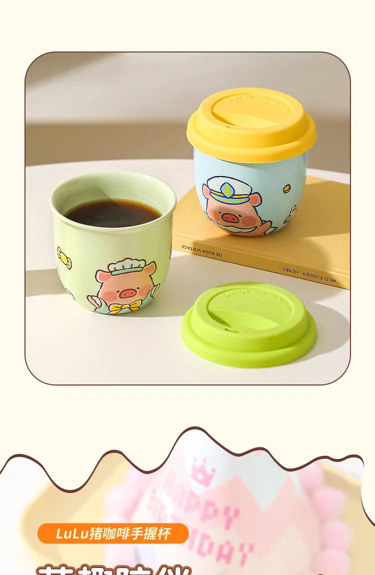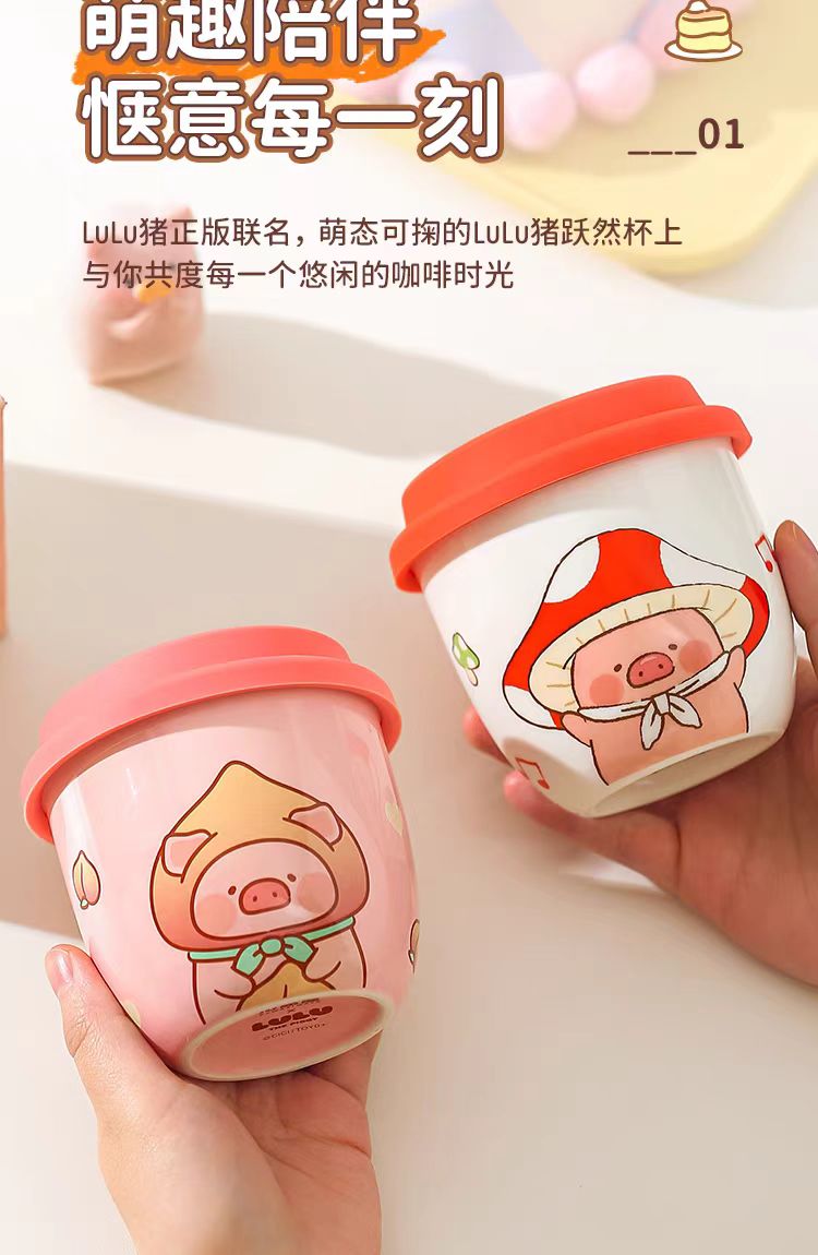 4楼Eubelle欧蓓 川岛屋&lulu猪联名 咖啡杯陶瓷杯300ml 带盖办公室 活动价:23.8元