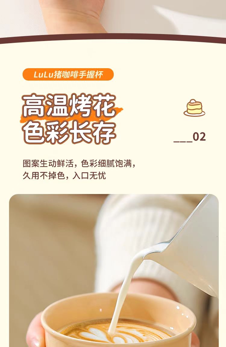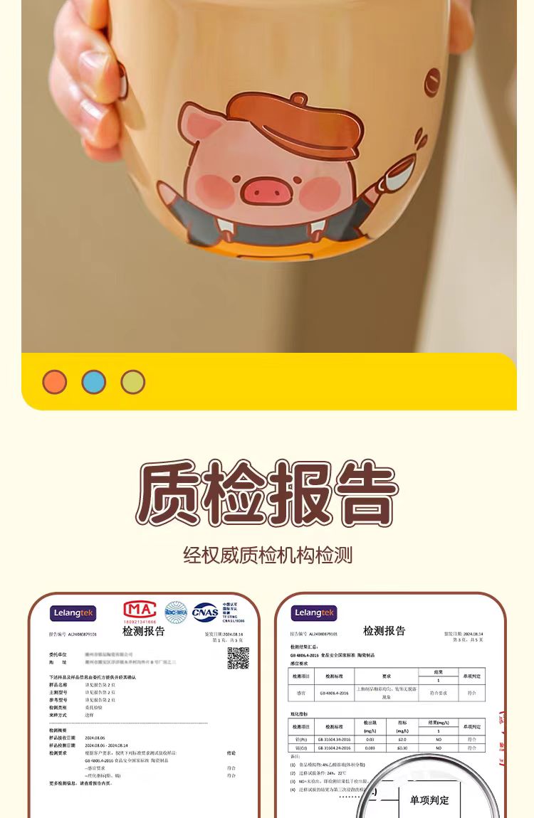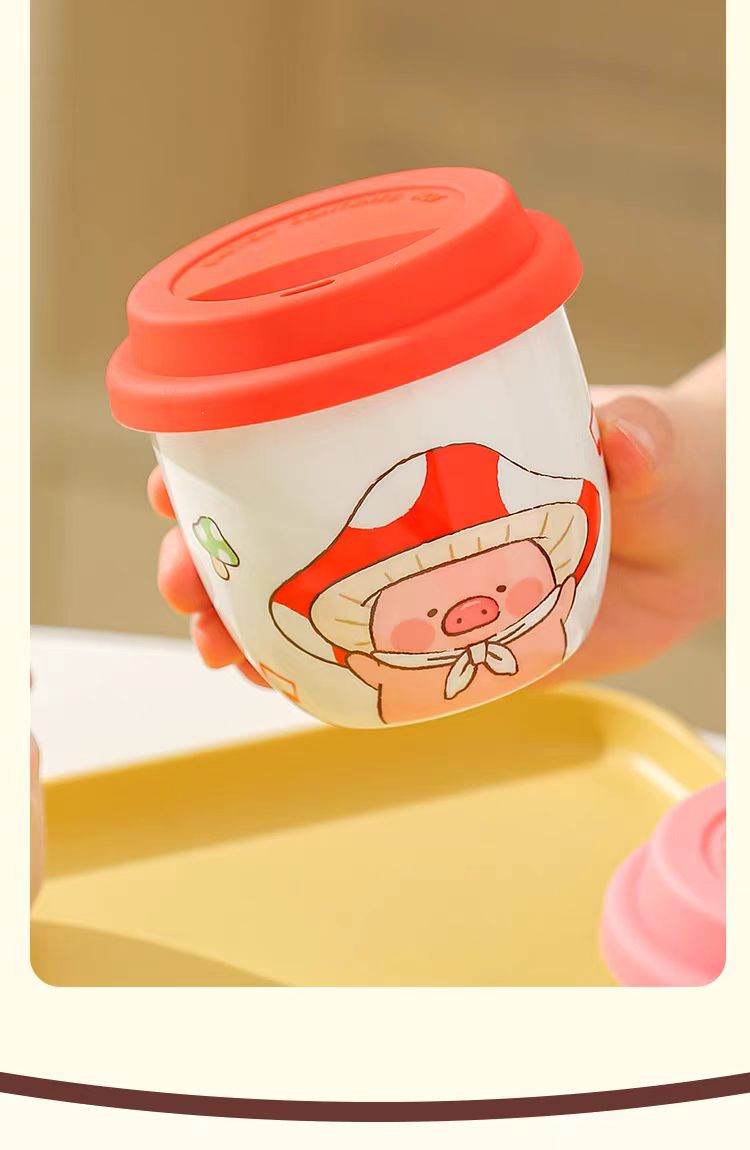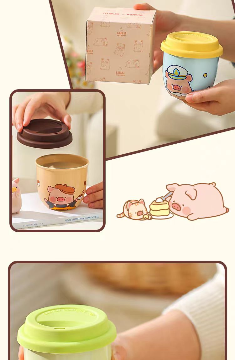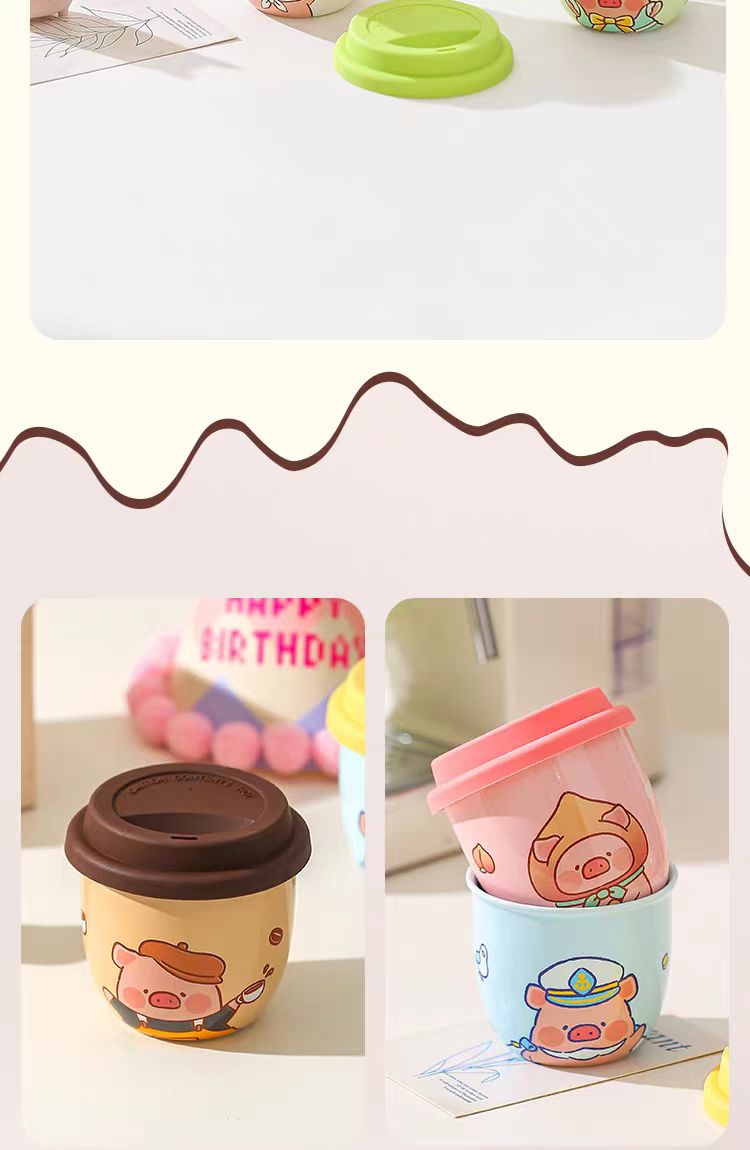 4楼Eubelle欧蓓 川岛屋&lulu猪联名 咖啡杯陶瓷杯300ml 带盖办公室 活动价:23.8元