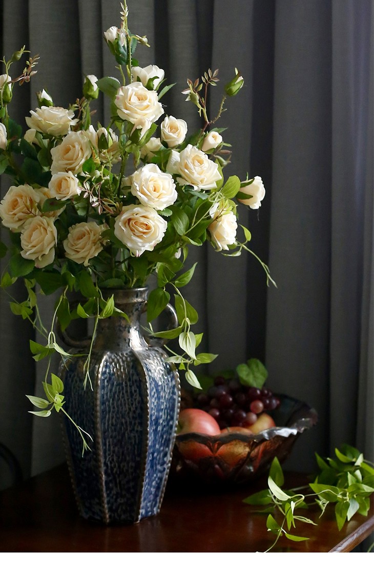 原野玫瑰花插花室内大型仿真花卧室家装饰花假花餐桌落地客厅花艺