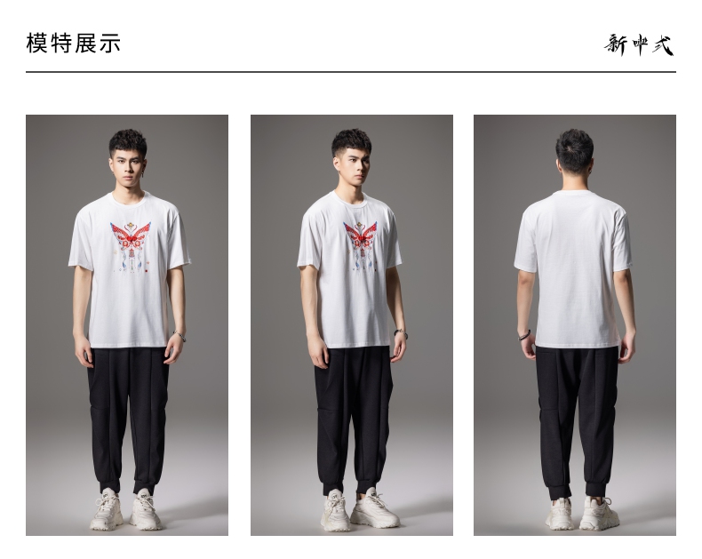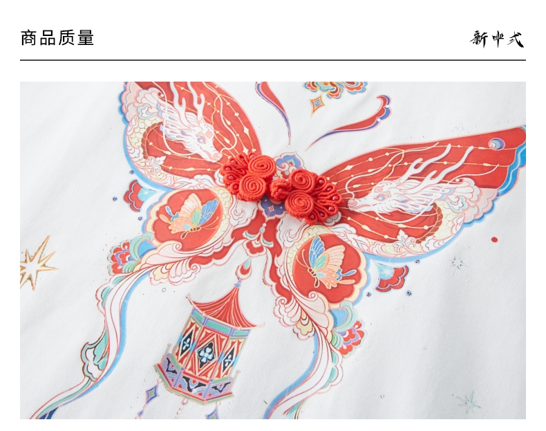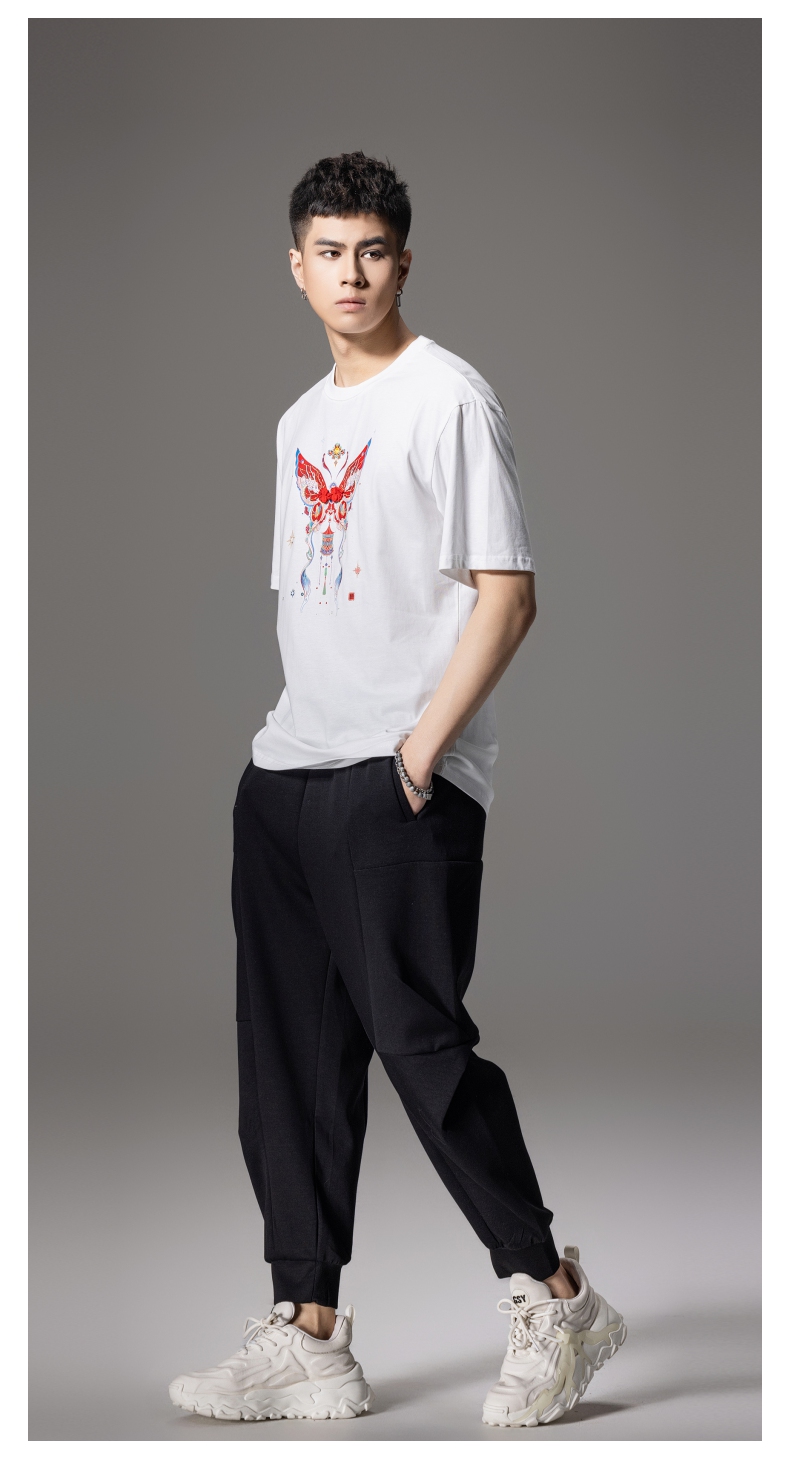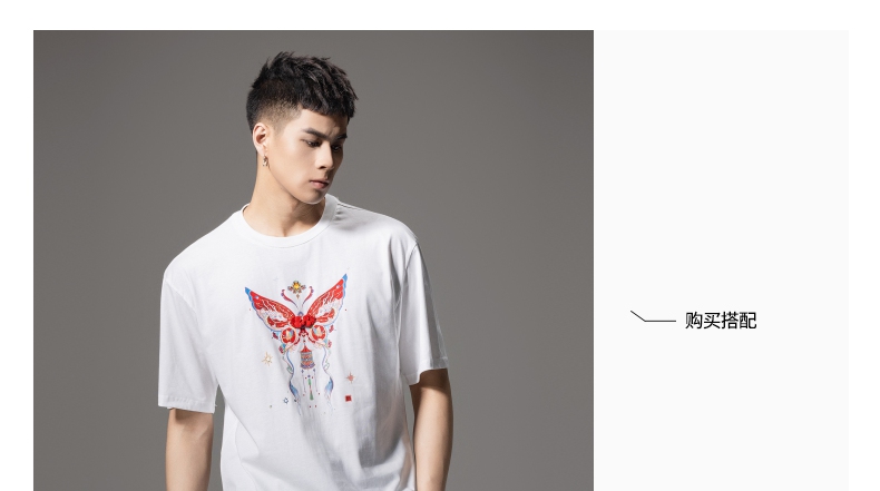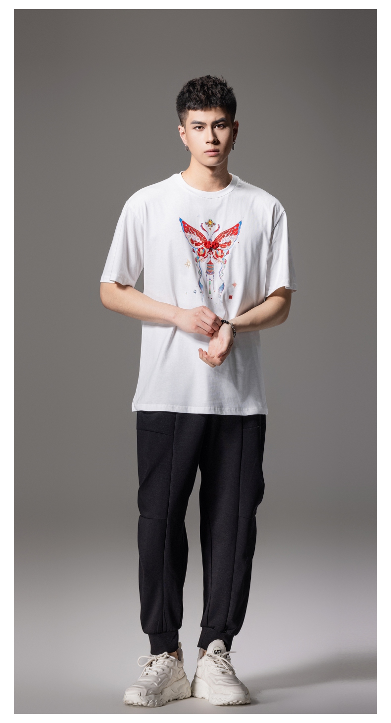 PINLI品立2024新中式夏季新款蝴蝶印花圆领短袖T恤男BG242111031
