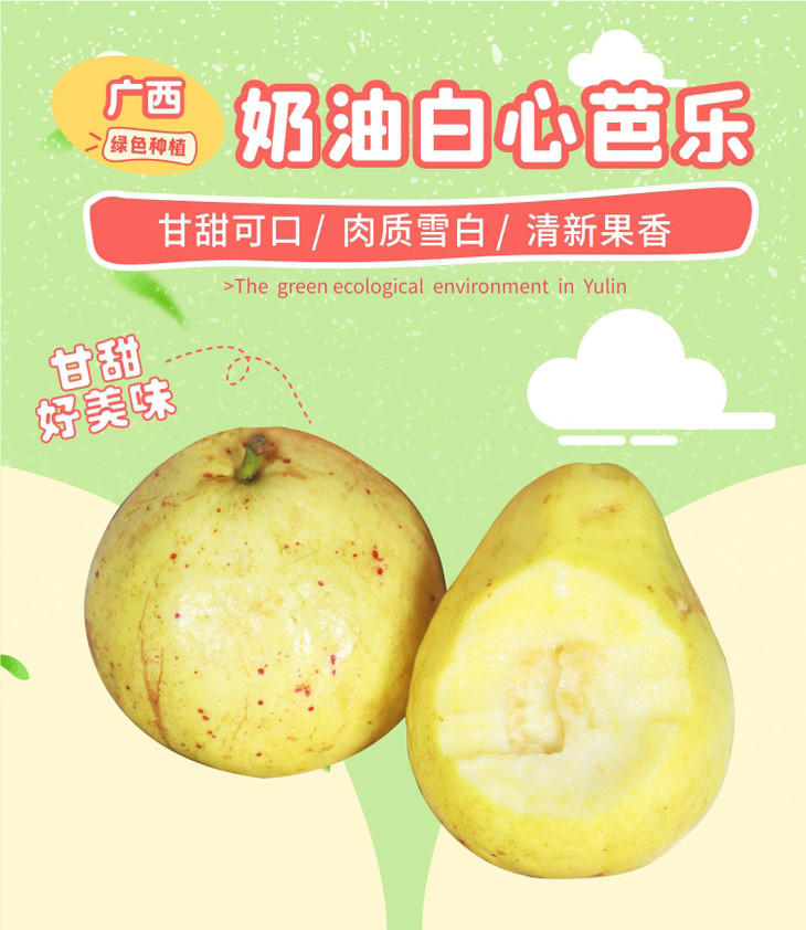 芭乐代言人又上线了!吃了两三年红心芭乐,应广大入芭乐坑的老粉要求,找了款白心芭乐,也非常非常好吃,是软糯型的,一定要加酸梅粉呀,白心的蘸着特别特别美味,有奇异的冲撞感!因为酸梅粉送得不多,喜欢的自己去买一袋,我推荐店里的那款哦,还有果肉,可以泡水!