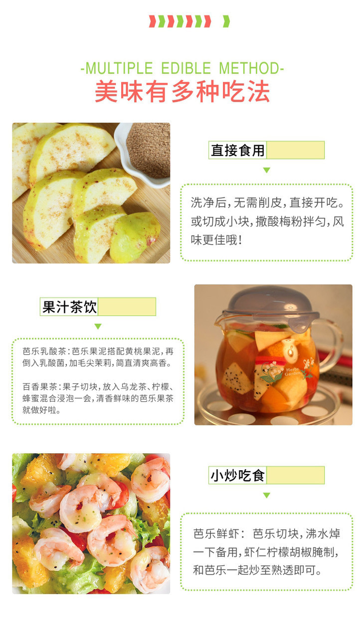 芭乐的吃法很多,这款也有送酸梅粉,可以沾着吃,特别酸甜爽口。除此之外,还可以加其他配料拌着吃。红心的我喜欢直接啃,但白心的真的加酸梅粉更更更好吃,风味太独特了。