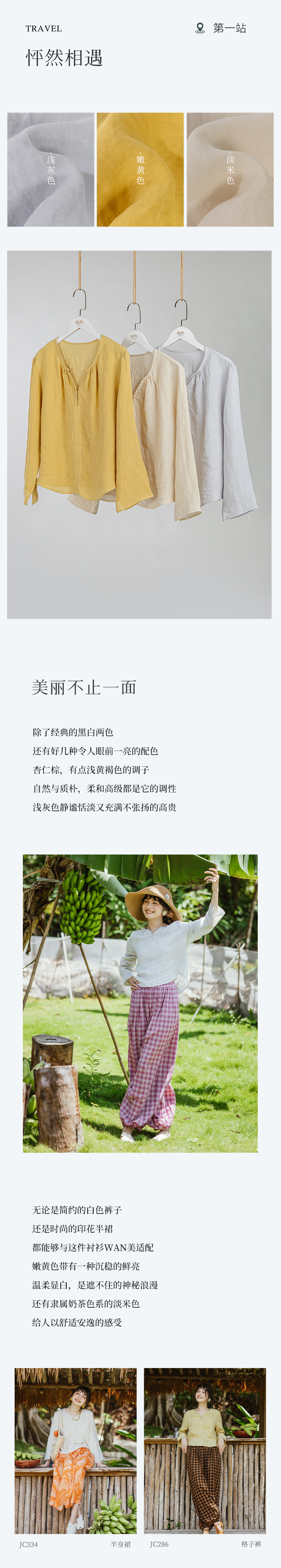 以天然亚麻为载体,融合热烈色彩与自在剪裁为身在城市、心怀远方的女性提供兼具美学与舒适的旅行着装