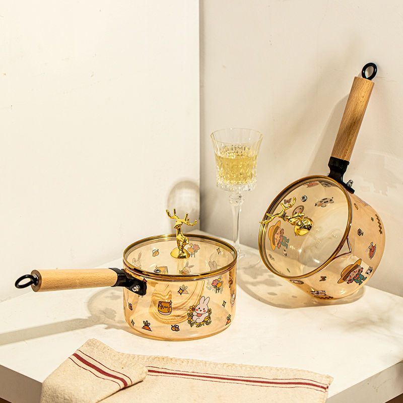 带盖可明火电陶炉加热奶锅高硼硅耐高温玻璃碗家用耐热玻璃