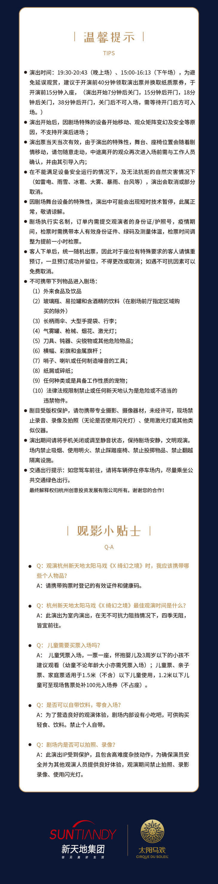 下单后,请拨打预约电话:13175018393(微信同号)预约观看演出日期及观看场次 ,以客服确认为准。节日期间票源紧张,建议提前预约( 预约时间:工作日9:00-17:00)。未预约可退,预约提交后不支持改期或取消。