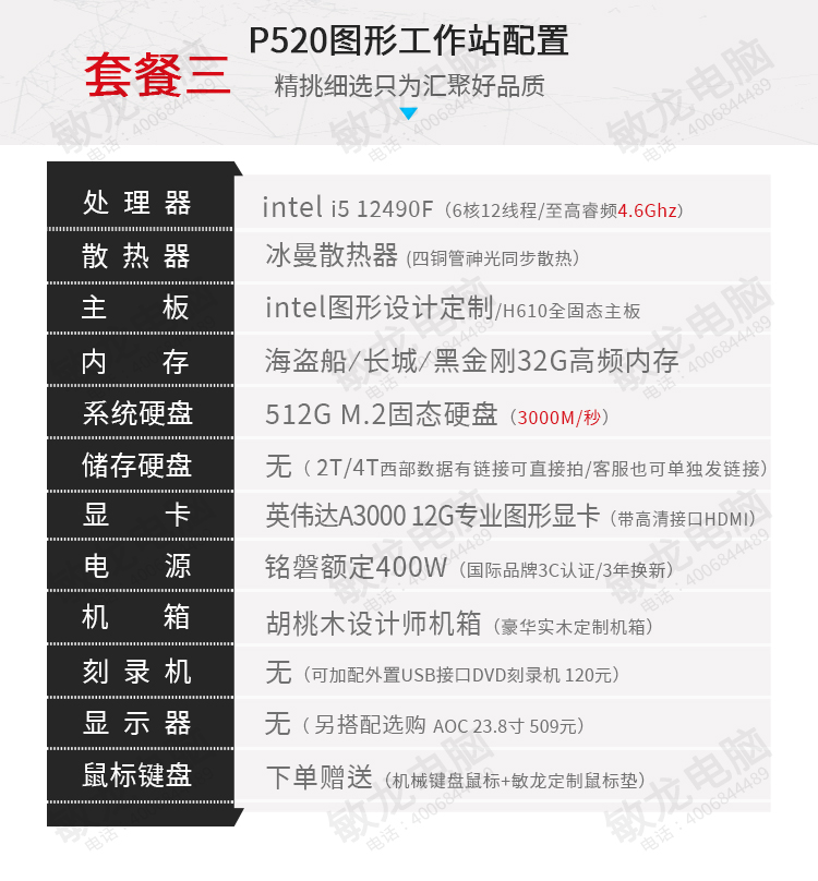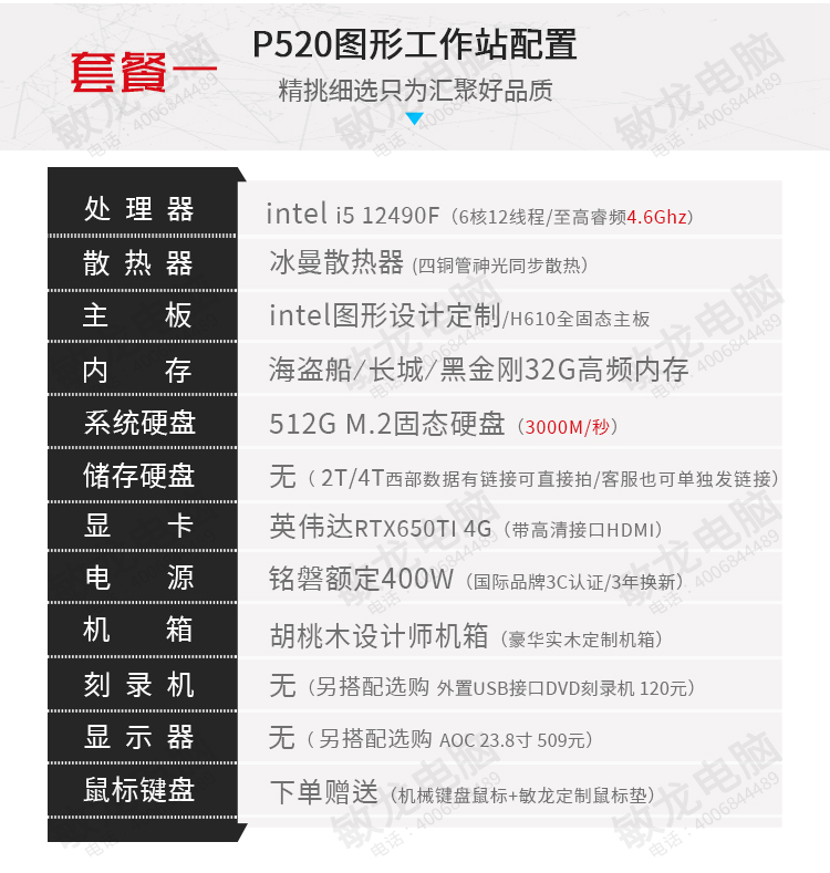 【敏龙电脑】P520 图形工作站/超高性价比/6核12线程产品成色99新