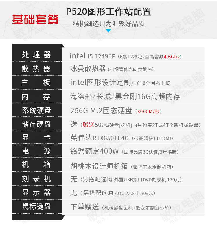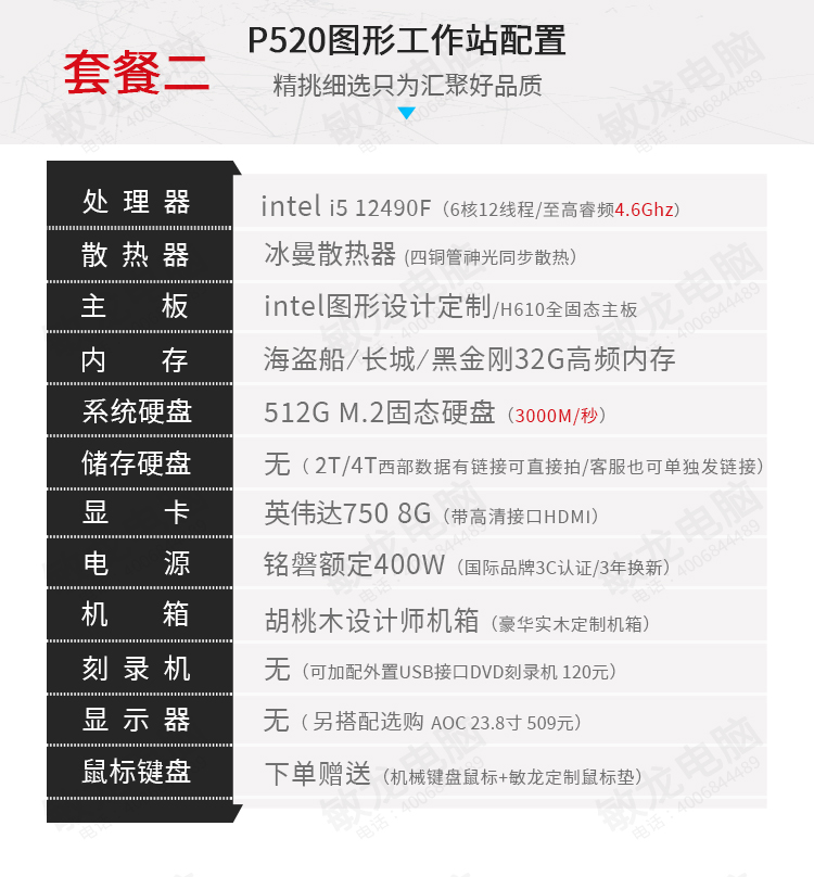 【敏龙电脑】P520 图形工作站/超高性价比/6核12线程产品成色99新-全新