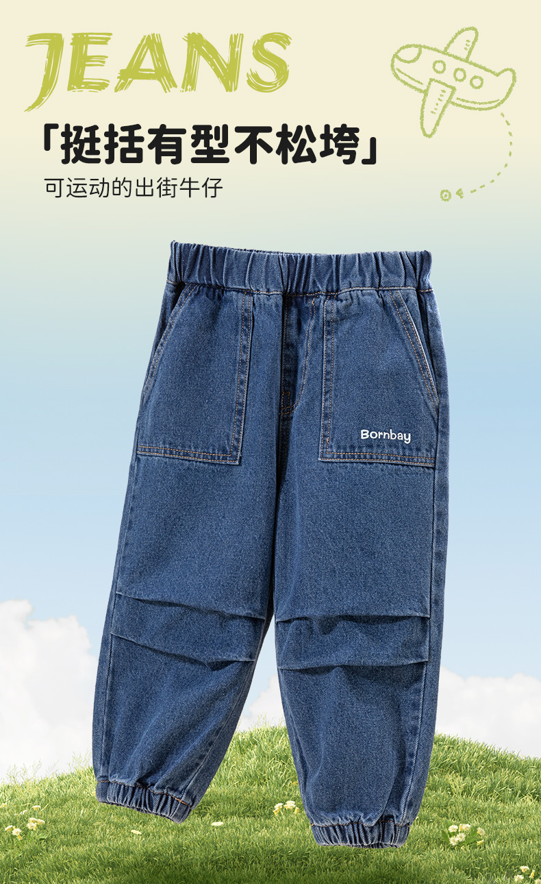 贝贝怡童装男童牛仔裤秋季洋气儿童裤子春秋款2024新款休闲百搭裤ZB3DK005